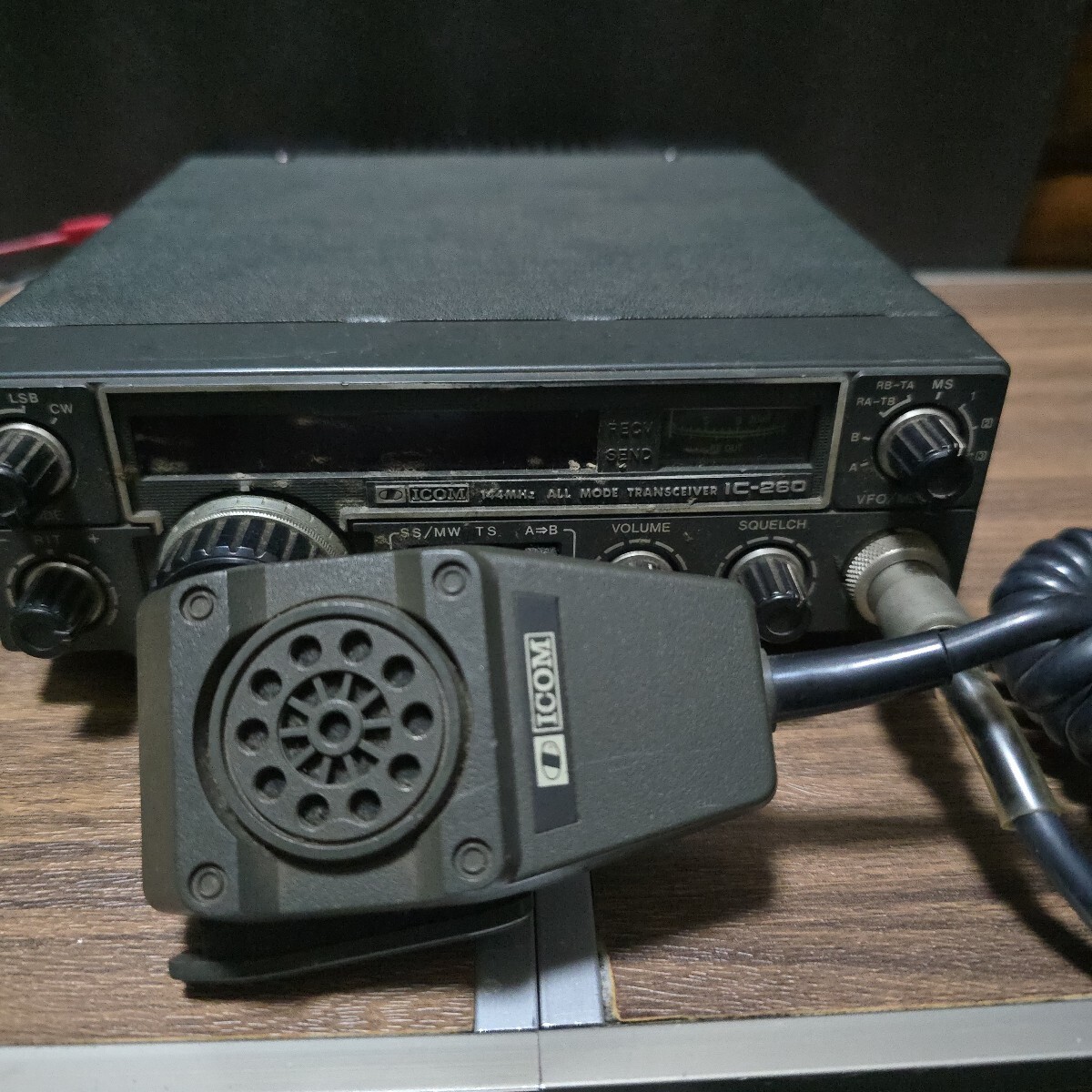I com IC-260 中古品になります。(144Mhz 10w機)電源12Vで入力し(定格13.8v)、ディスプレイ始動確認済みです。(マイクIc-hm7付き)