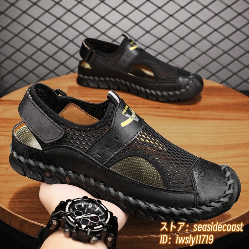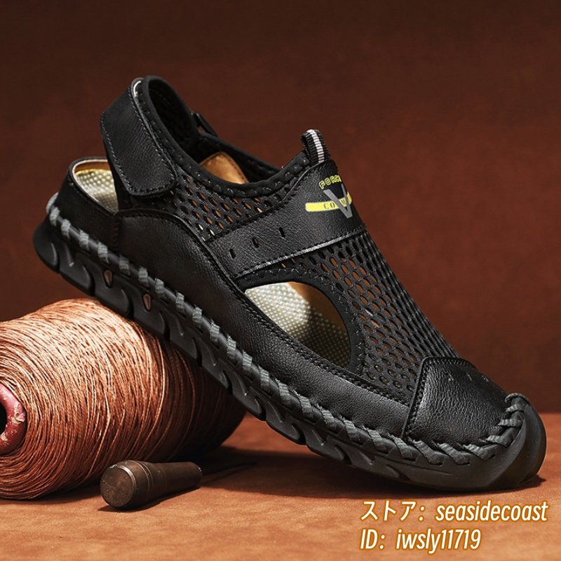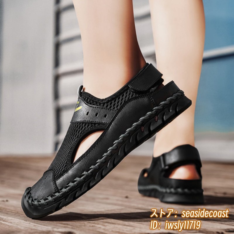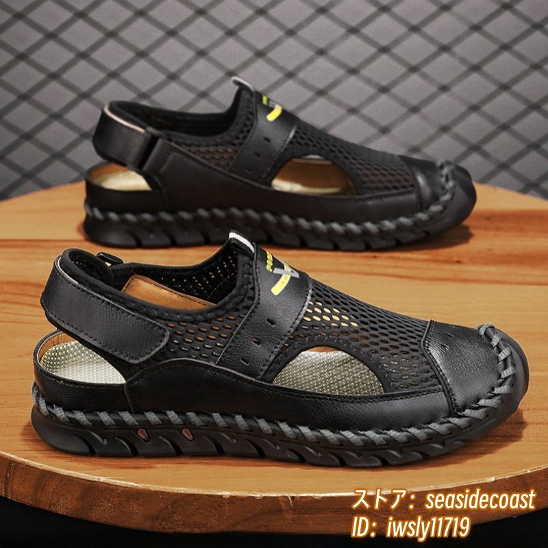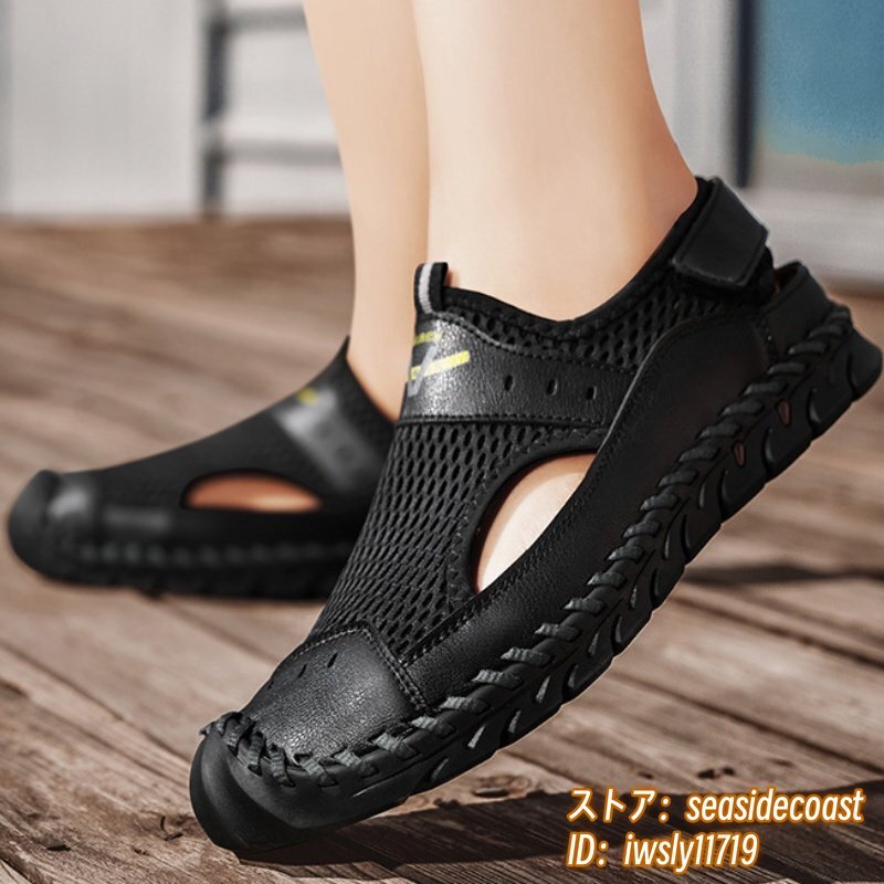 新品 スポーツサンダル メンズ ビーチサンダル ウォーキングシューズ 通気性 メッシュ アウトドア ローファー 防滑 軽量 ブラック 27.0cm