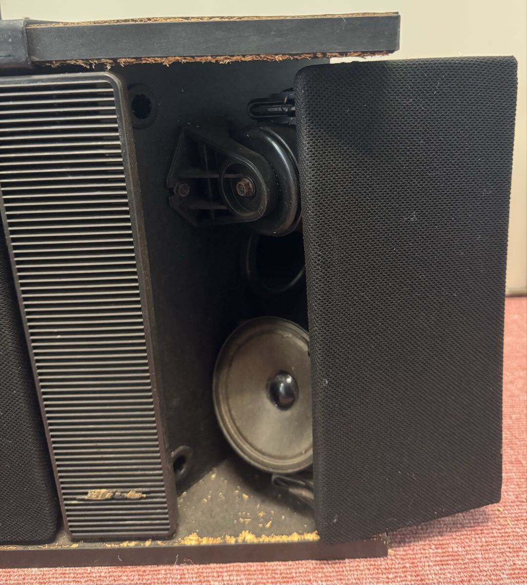 こちらの商品は清掃済みですが、動作確認を行う環境がないため、実際の動作状況については不明です。清掃の際、木製部分の縁に軽い経年劣化が見られ、内部の一部の隅には取りきれない埃がありますが、大きな問題はございません。