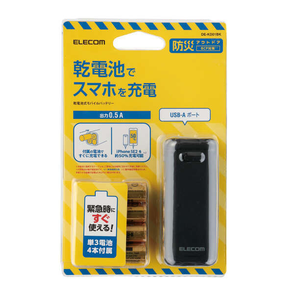 | 製品 | USB-A×1ポート搭載 乾電池式モバイルバッテリー |