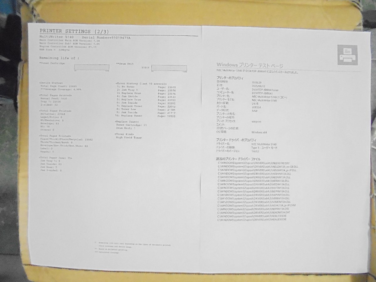 | 印字枚数 | 23,765枚 |