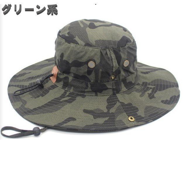 帽子 メンズ ジャングル ハット グリーン系 迷彩 カモフラージュ サマー ウエスタン カウボーイ ハットアウトドア