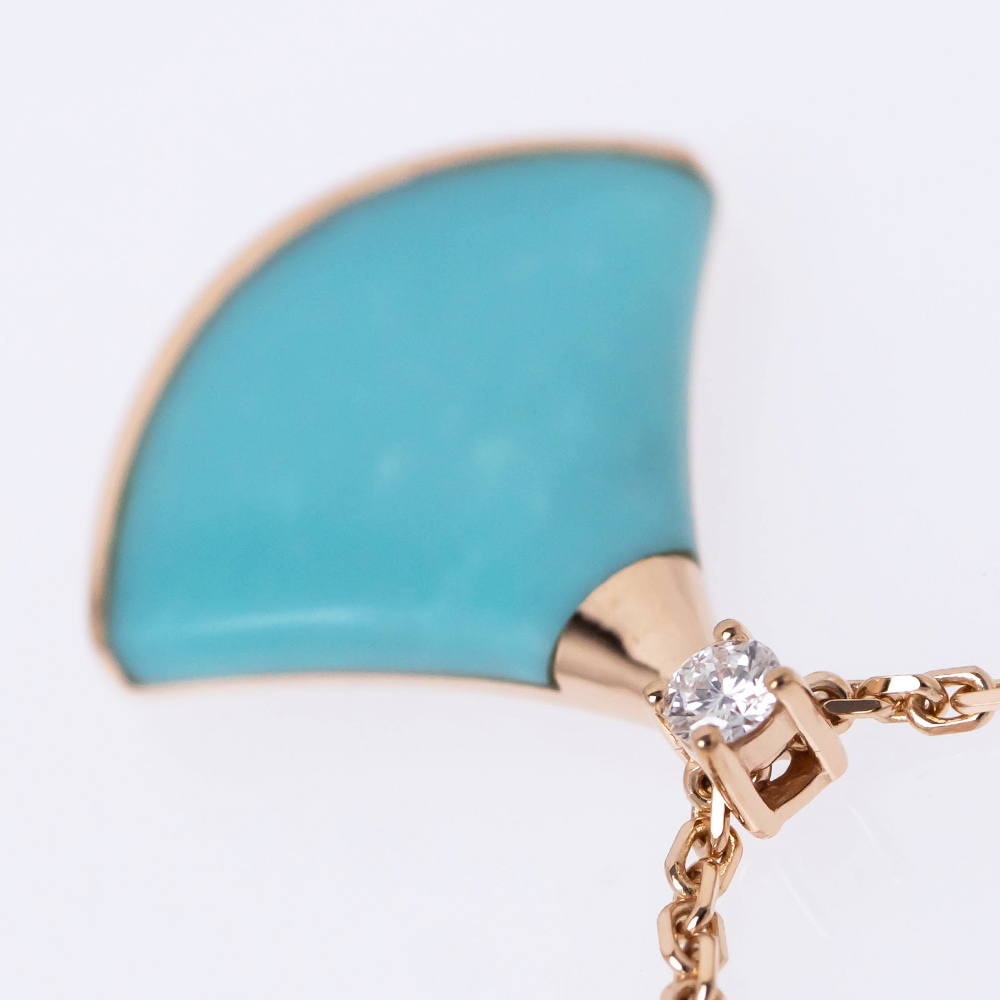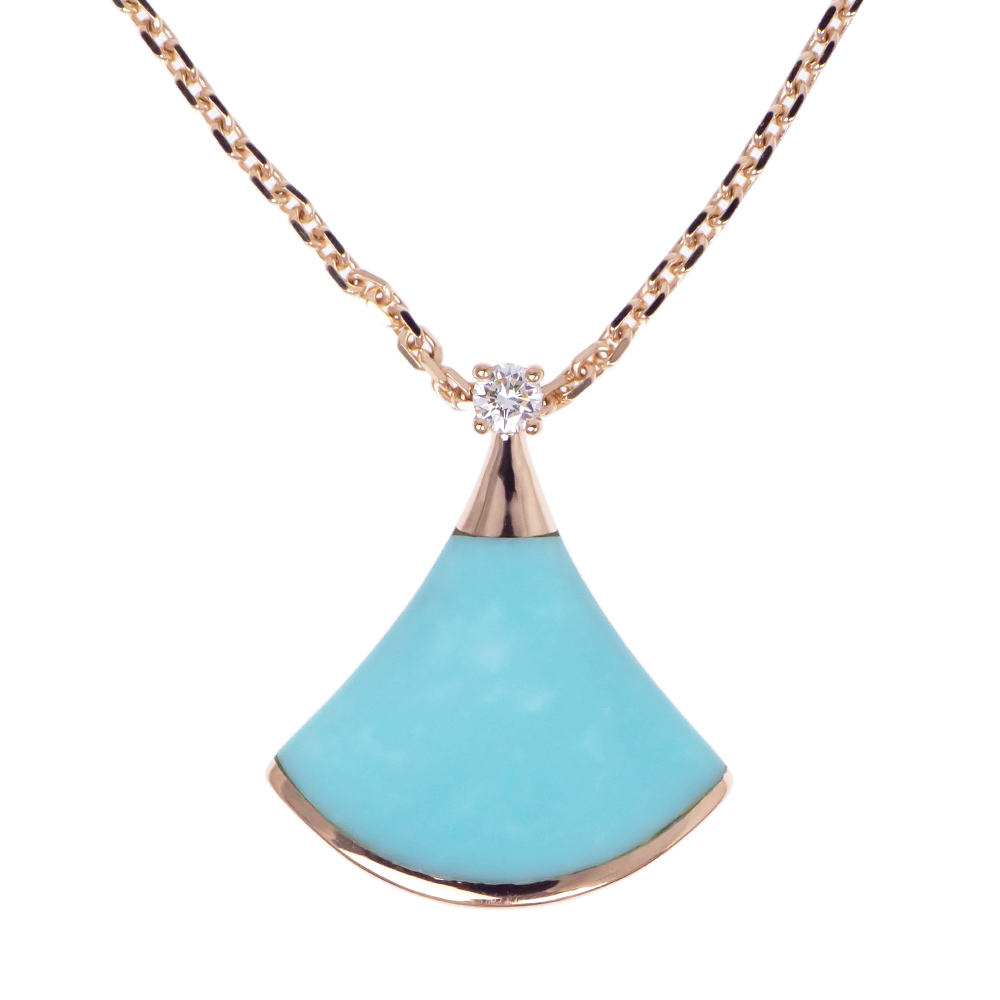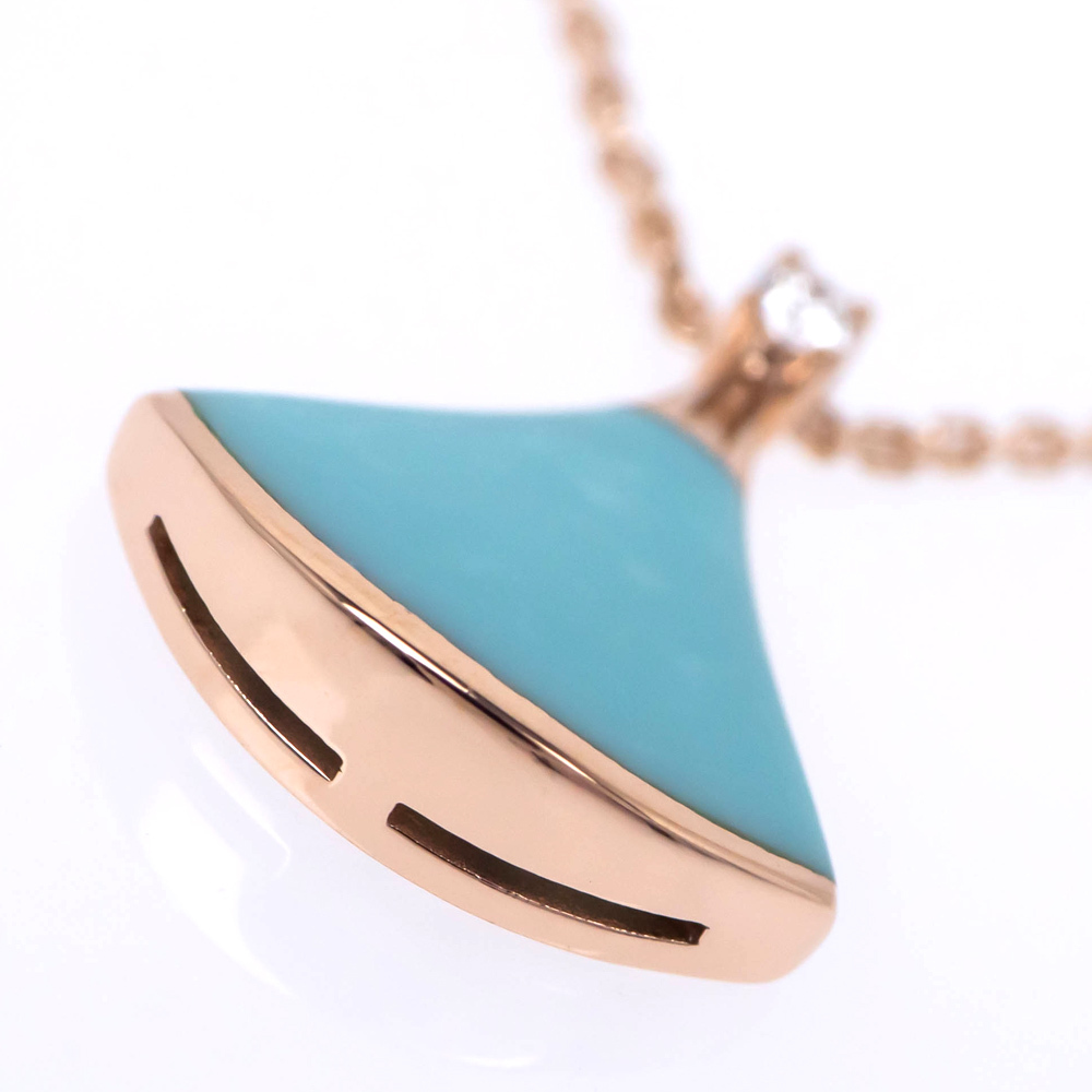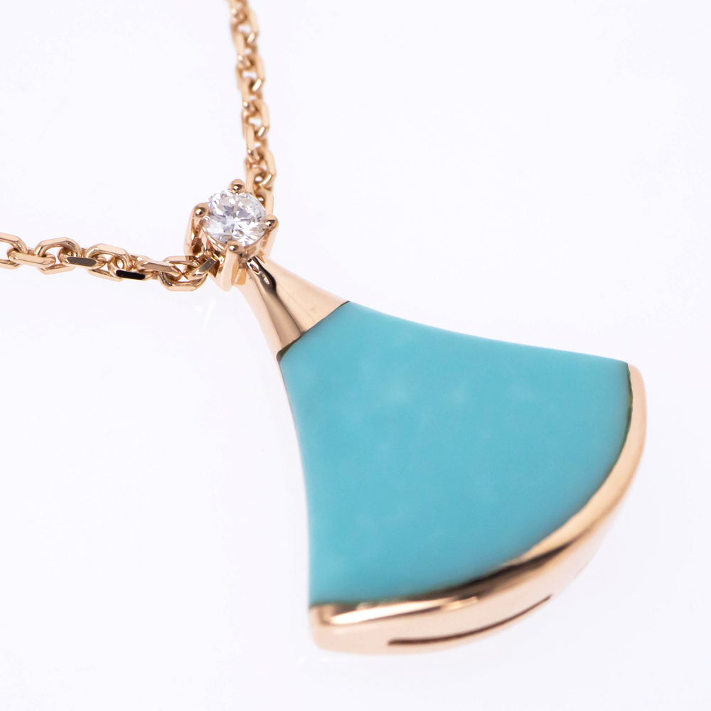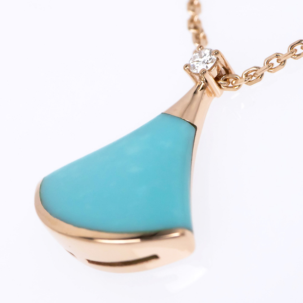 【名東】ブルガリ ディーヴァ ドリーム ネックレス 750PG ピンクゴールド 43cm-41cm ターコイズ ダイヤ 4.5g