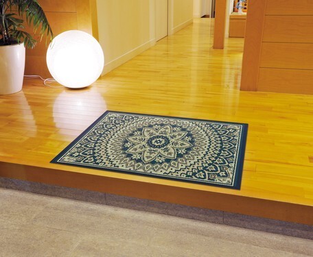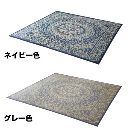 | 即決可@新品メダリオン柄3重織い草玄関マット 純国産 60×90cm/ネイビー | ||||||||||||