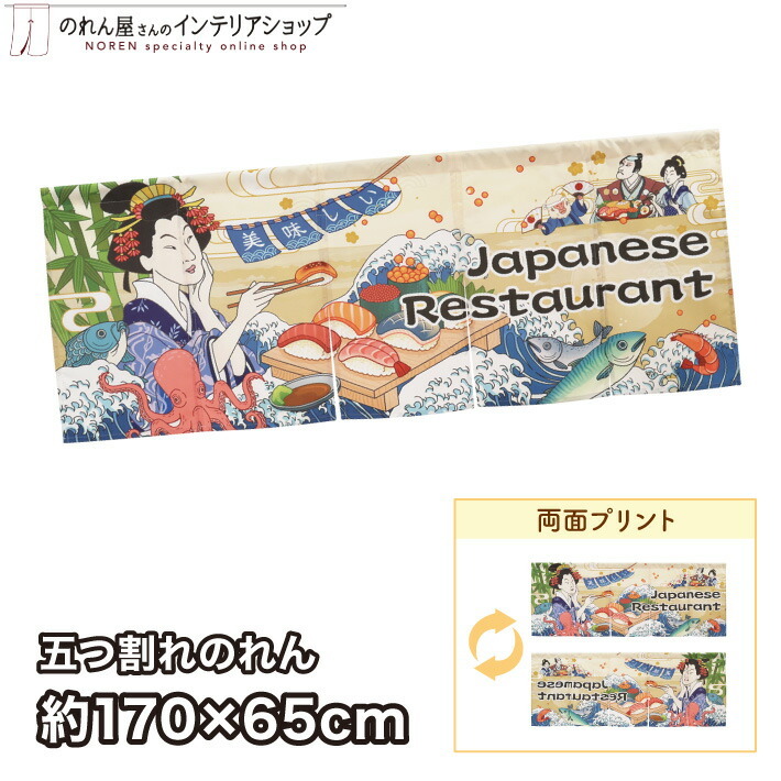 ■4ヶ所割れ目の入った、5つ割れののれんです。