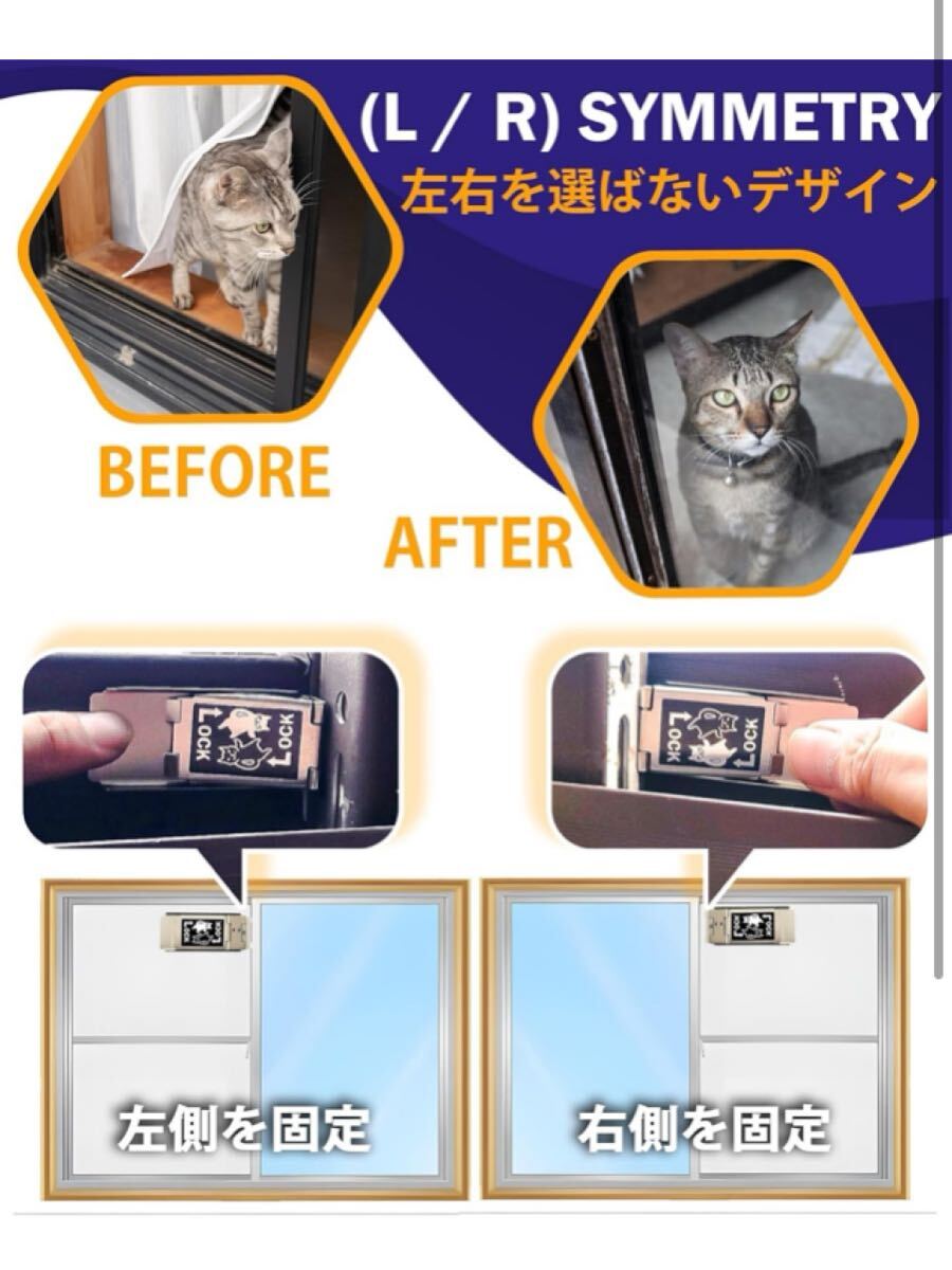 【左右対称デザイン】左右対称デザインで網戸の向きを気にせず使用可能な網戸ストッパー 、窓ストッパー。猫ちゃんが網戸を開けてしまうことを防ぐ網戸ロック用品です。幼児の転落防止対策、ネコや犬・赤ちゃんが窓の外に出るのを防ぎます。用途いろいろ、防犯 窓 ストッパー 網戸以外の扉にも使用可!