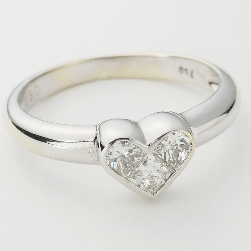 煌めくダイヤモンドをハート型にセッティングしたホワイトゴールド製のリングです。