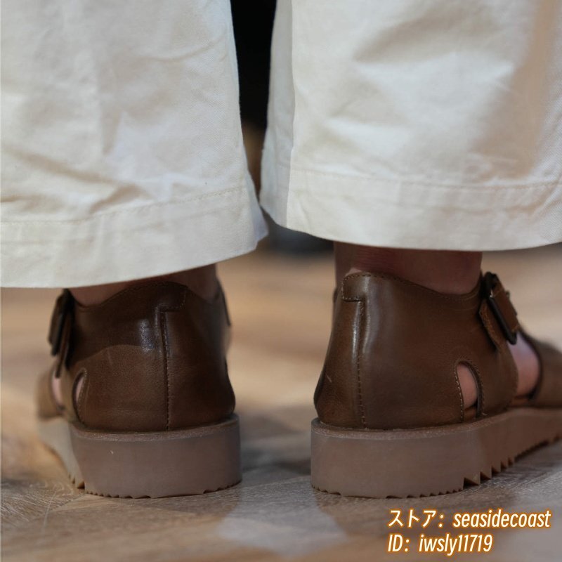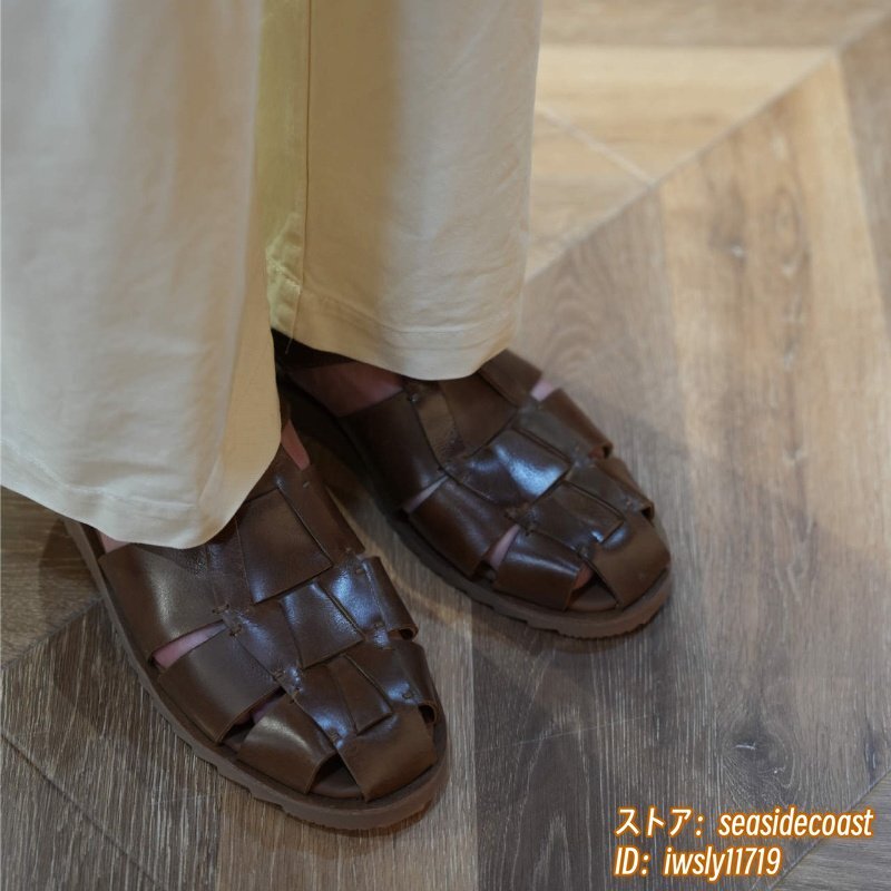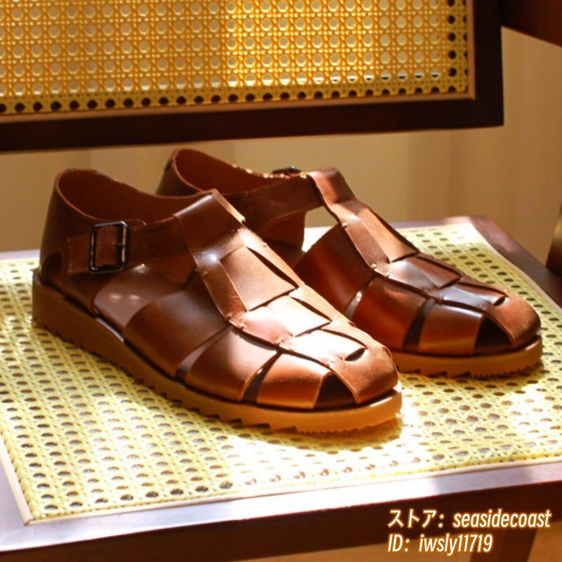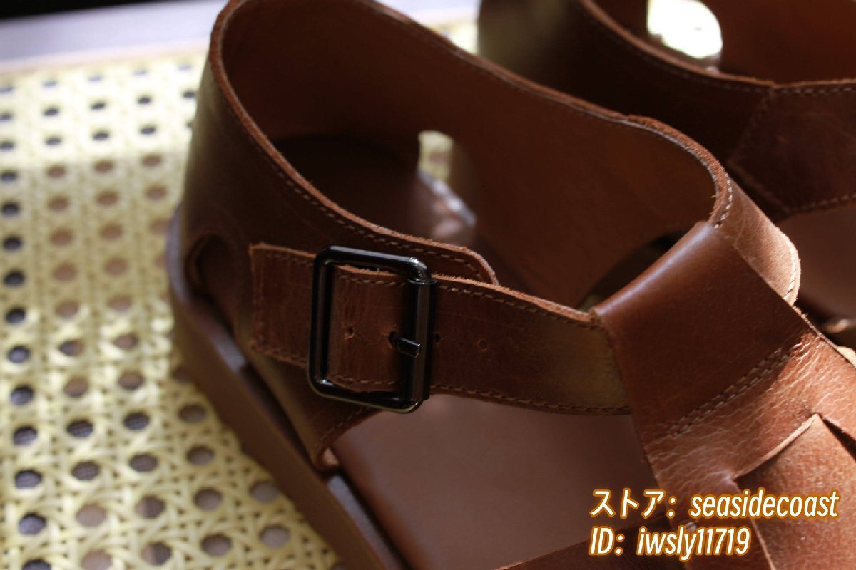 最高級★本革 グルカサンダル メンズ 牛革 レザーサンダル 編み込み 職人手作り ビジネスシューズ 革靴 紳士靴 ビーチ新品 ブラウン 26.5cm