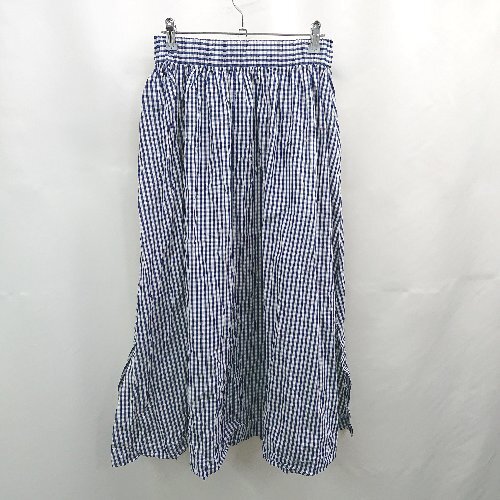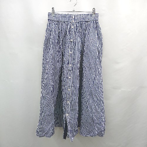 ◇ Θ ジムフレックス 柄入り ロング丈 プリーツ スカート サイズ14 ネイビー ホワイト系 レディース E