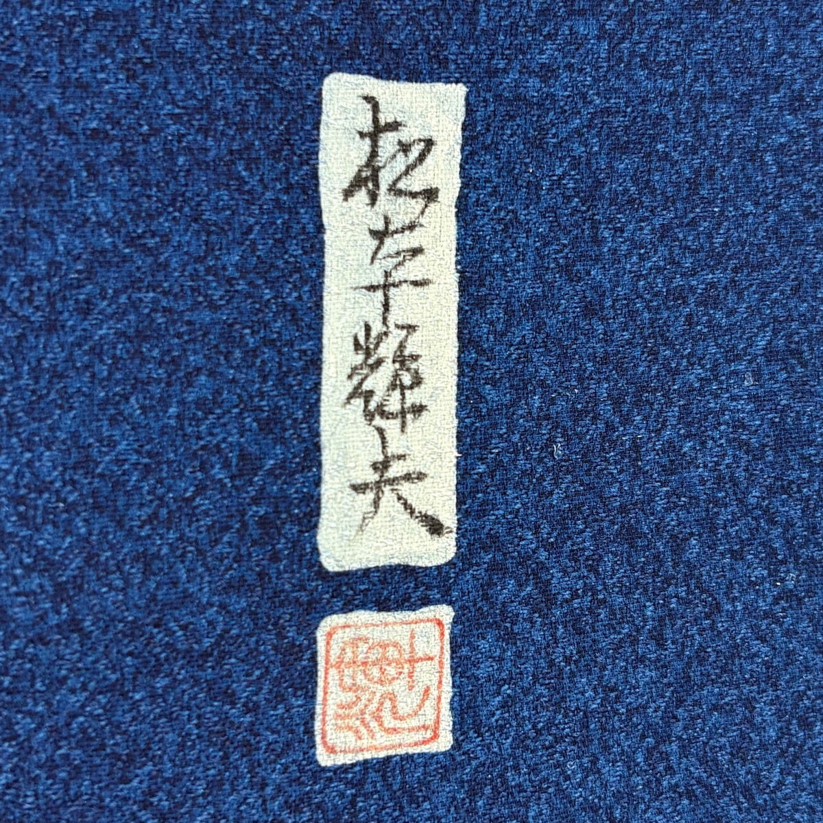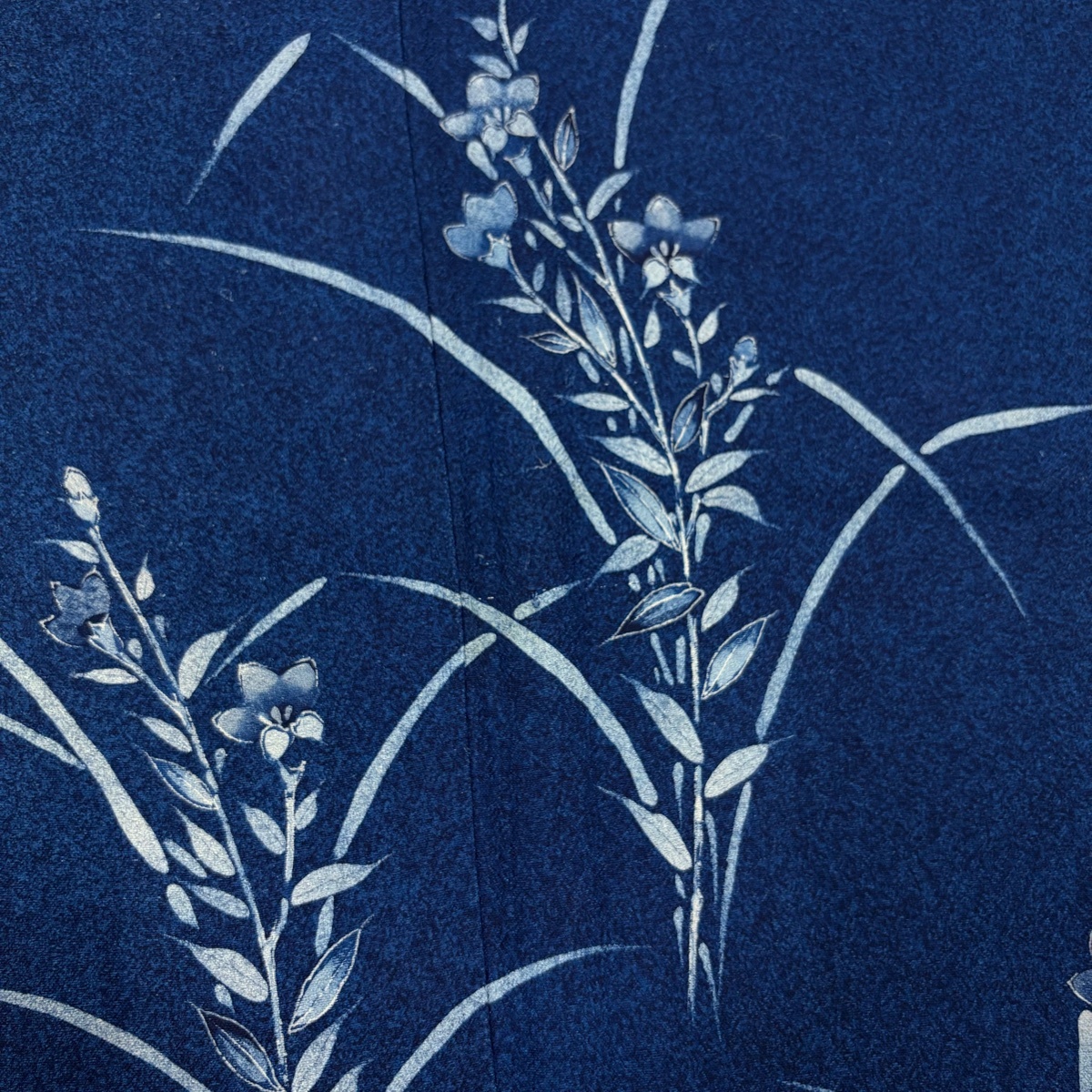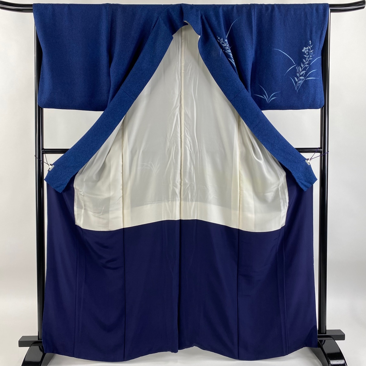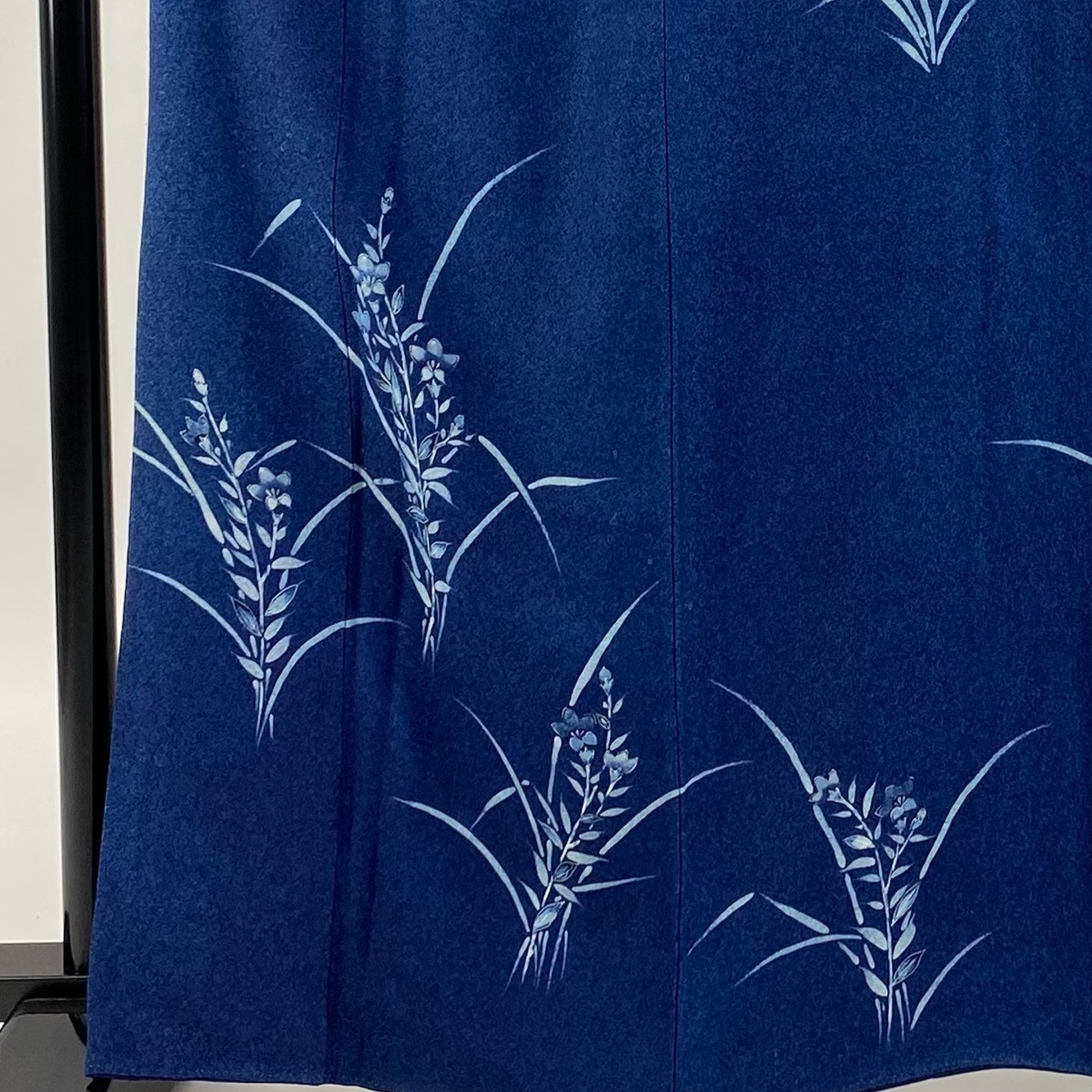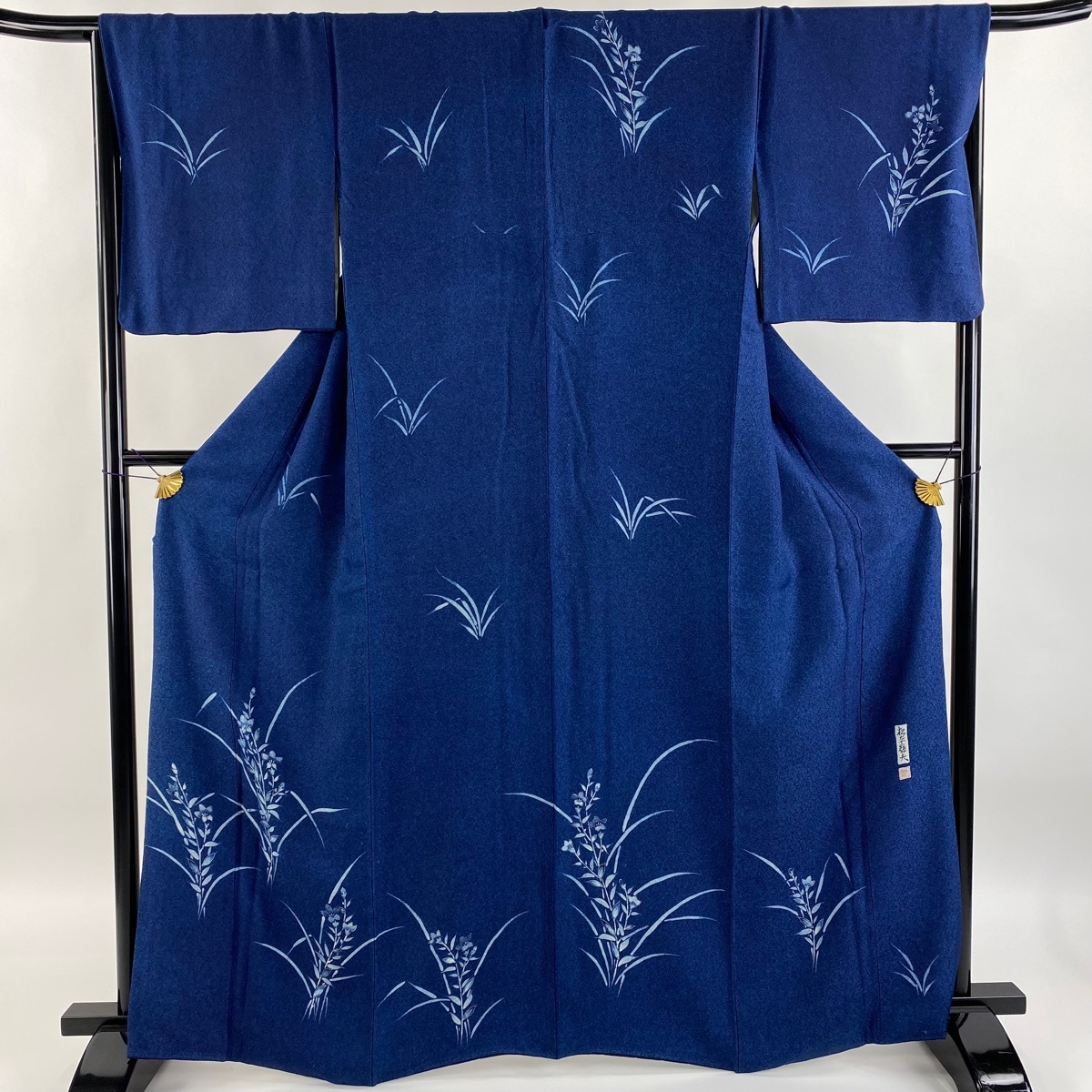 付下げ 秀品 落款 桔梗 幾何学 藍色 袷 身丈162 裄丈68.5 L 正絹 【中古】 |