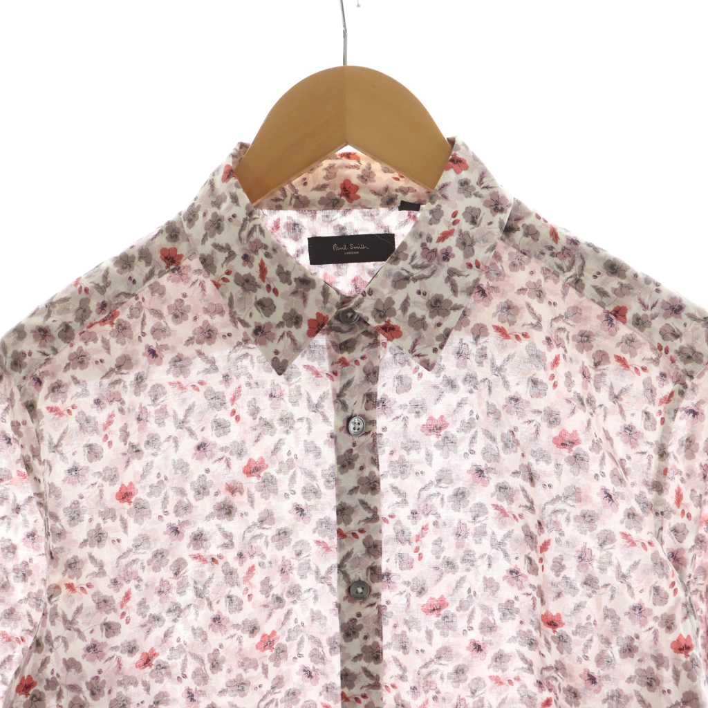 ポールスミス PAUL SMITH シャツ 長袖 花柄 麻 リネン混 L グレー 白 ホワイト 赤 レッド PL-DC-37345 /AN31 メンズ