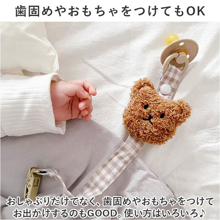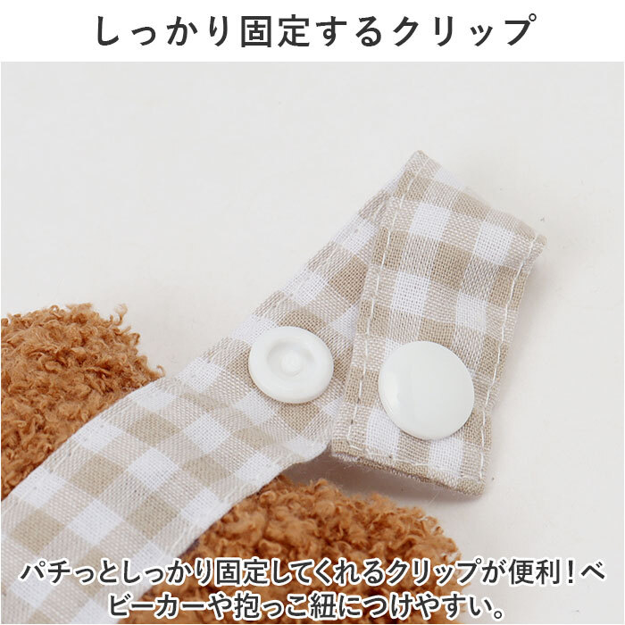 商品説明 | ・・おしゃぶりの落下と紛失防止に☆ふんわりクマさんがキュートな、おしゃぶりホルダーが登場。 ・【おしゃぶりの落下と紛失の防止に】 ・おしゃぶりのどこ行った?!落としちゃった!!問題に役立つ、お出かけの必須アイテム。 ・【ほっこり癒しのふんわりクマさん】 ・ふんわりな肌触りのクマさんは、ベビーが触っても安心。パパママを癒すキュートさも嬉しい◎ ・【しっかり固定するクリップ】 ・パチっとしっかり固定してくれるクリップが便利!ベビーカーや抱っこ紐につけやすい。 ・【歯固めやおもちゃをつけてもOK】 ・おしゃぶりだけでなく、歯固めやおもちゃをつけてお出かけするのもGOOD。使い方はいろいろ♪ ・【男の子も女の子も使える☆】 ・ナチュラルカラー仕立てなので、男の子も女の子も使える!出産祝いなどのギフトにもぴったり。 |