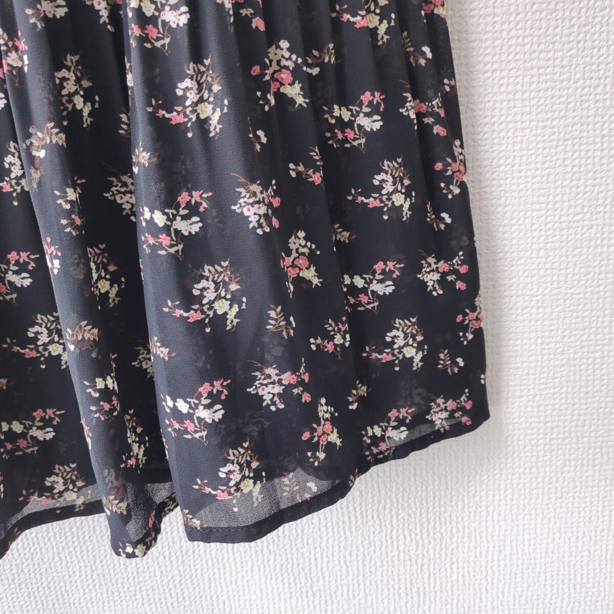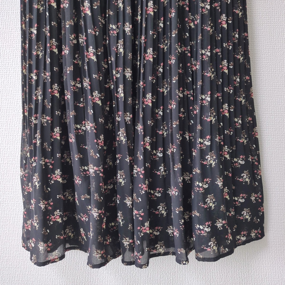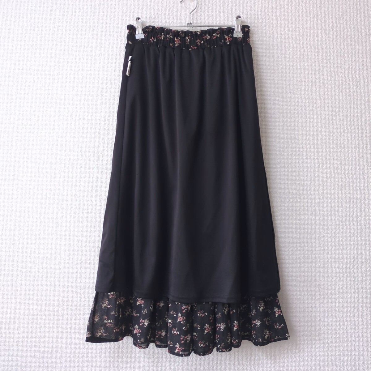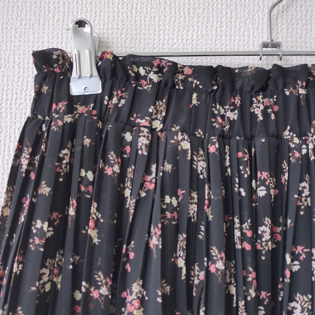 美品 FUN 小花柄ロングスカート レディースフリーサイズ ブラック 黒