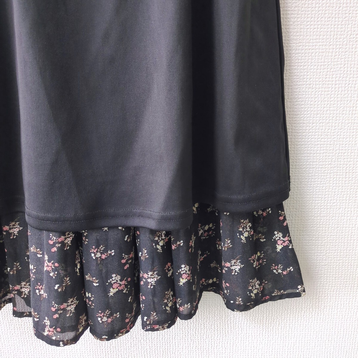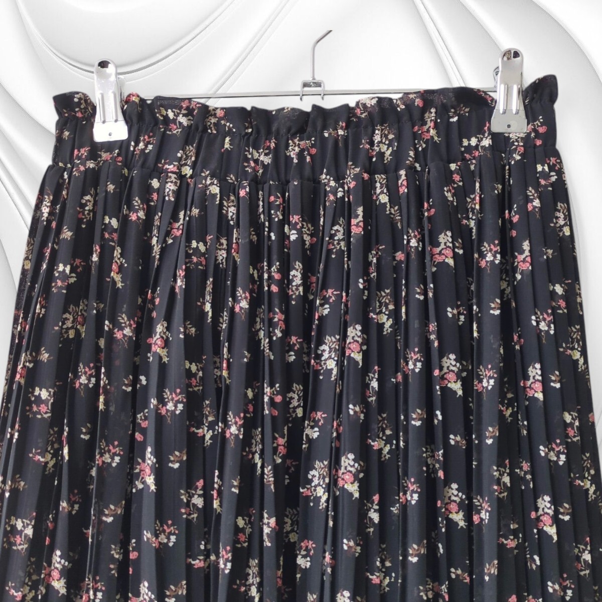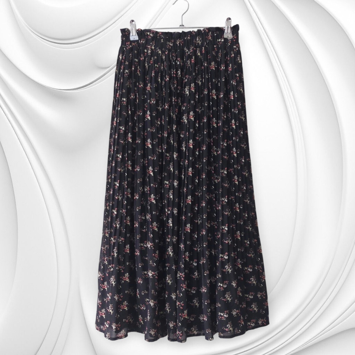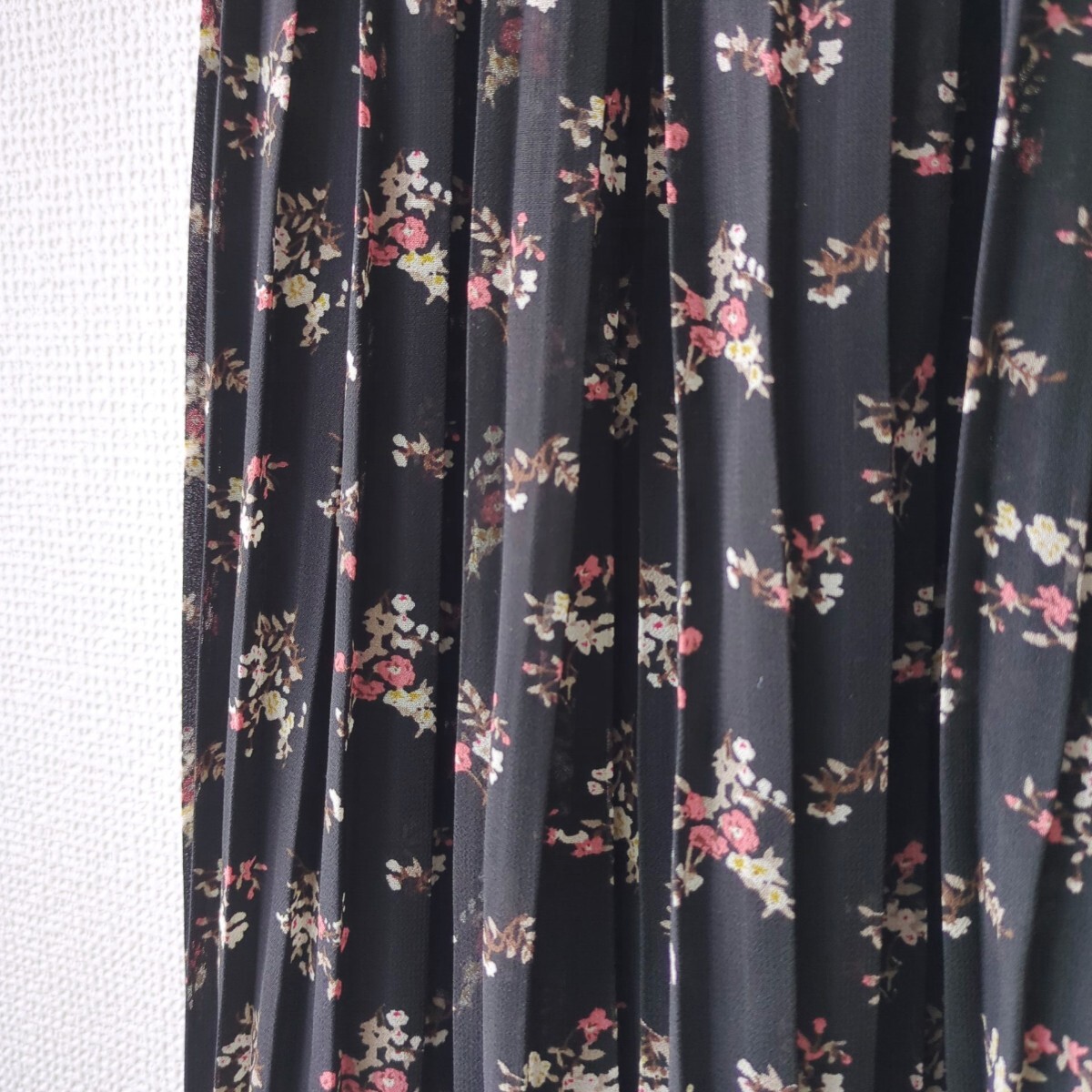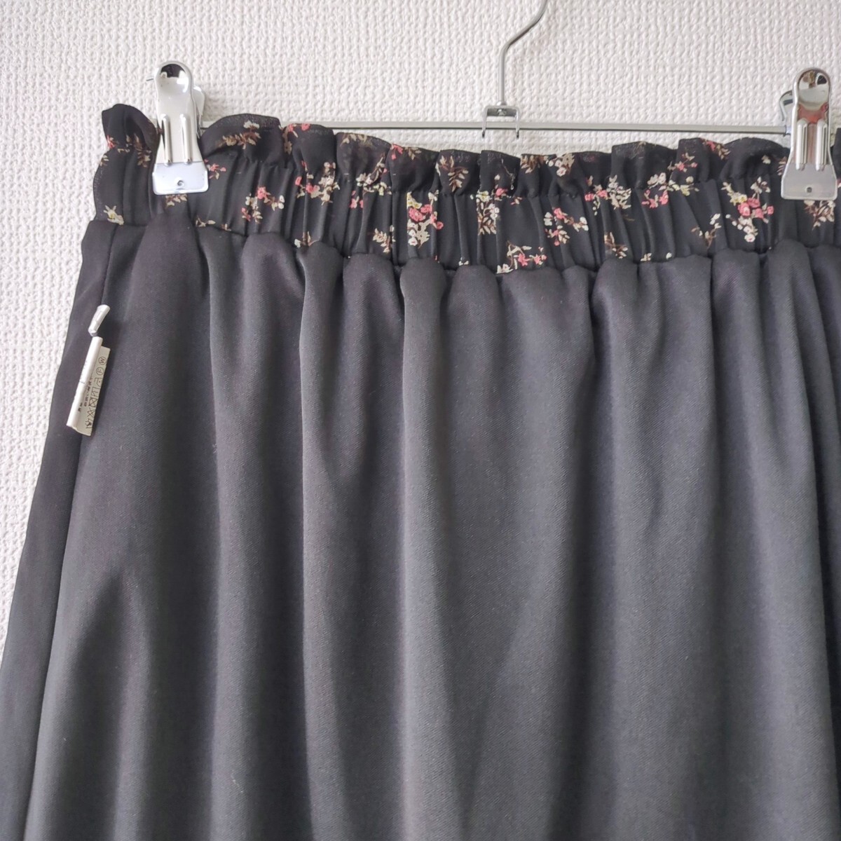 美品 FUN 小花柄ロングスカート レディースフリーサイズ ブラック 黒