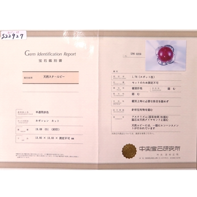 *Pt900(プラチナ) *スタールビー:19.680ct *ダイヤモンド:0.510ct *モチーフの大きさ(約):縦19.1mmx横19.3mmx厚12.7mm *アーム幅(約):5.9mm~6.0mm *号数:10.5号 *重さ(約):20.0g *ランク:A *付属品:鑑別書付 ※詳細はお気軽にお問い合わせください。 (RS) s22927 10005027