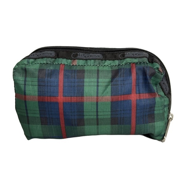 レスポートサック LESPORTSAC - グリーン×ネイビー×レッド チェック柄 美品 ポーチ