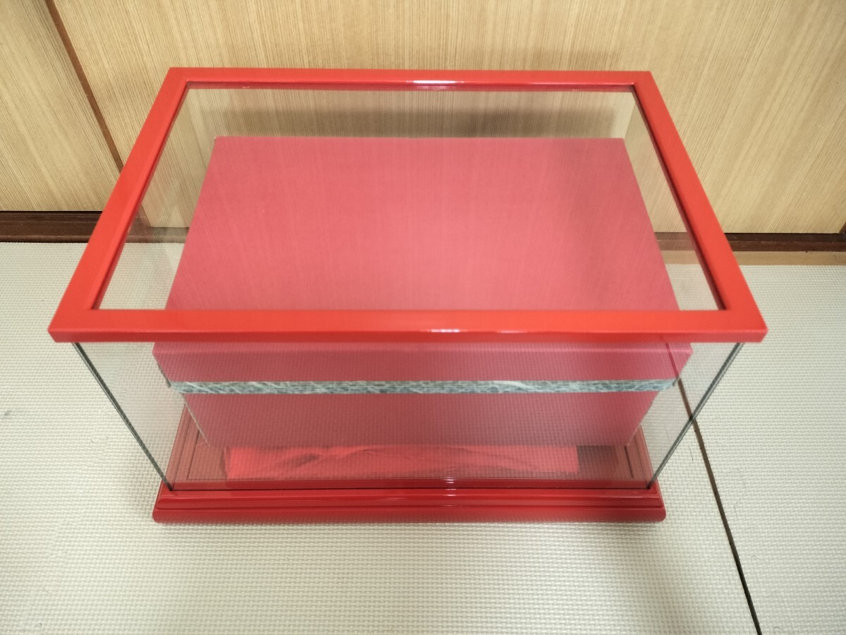 雛人形自体は比較的綺麗ではありますが、中古となりますので、ガラス端に若干のくすみや使用感等あります。(写真7枚目参照)
