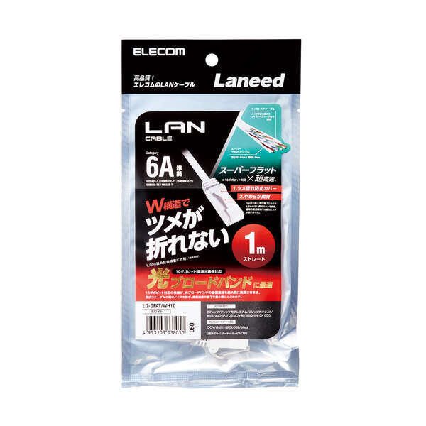 LANケーブル フラットケーブル 1m ELECOM LD-GFATWH10 CAT6A 爪折れ防止 フラット 1.0m ホワイト