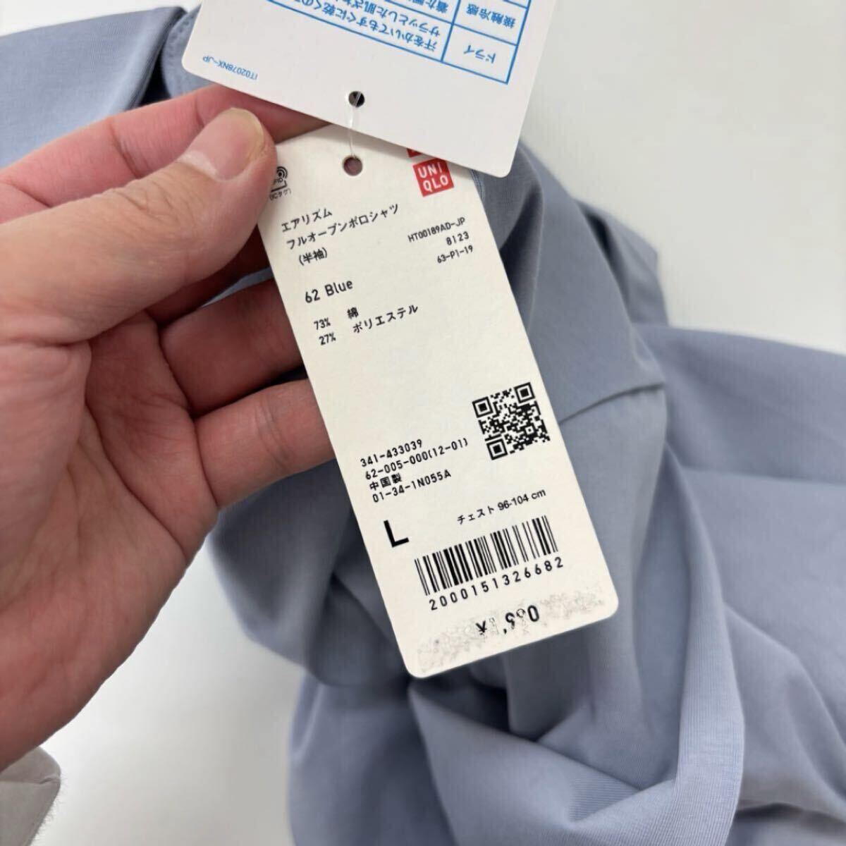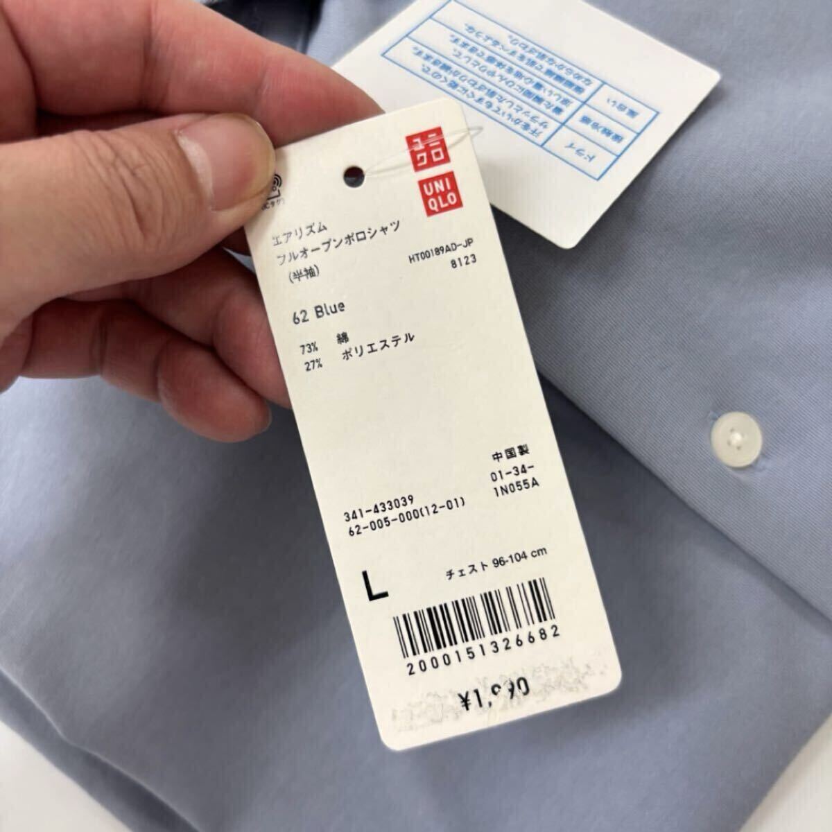 新品 UNIQLO ユニクロ 2枚 セット エアリズム フルオープンポロシャツ (半袖) シャツ BLUE サイズ L 705