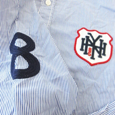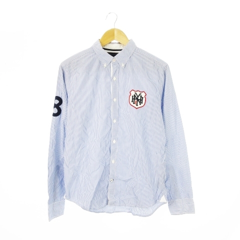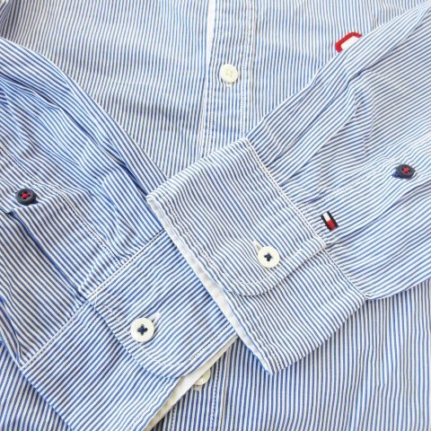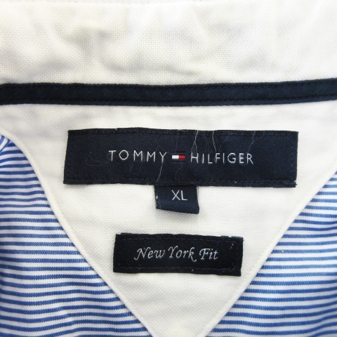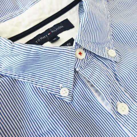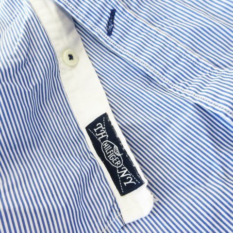 トミーヒルフィガー TOMMY HILFIGER ボタンダウンシャツ 長袖 ワッペン ワンポイント コットン ストライプ XL 青 ブルー /CK1 メンズ