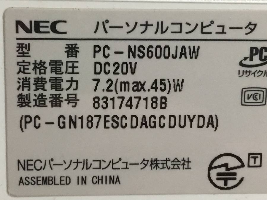 NEC PC-NS600JAW LAVIE NS600/J Core i7 8550U 1.80GHz■現状品