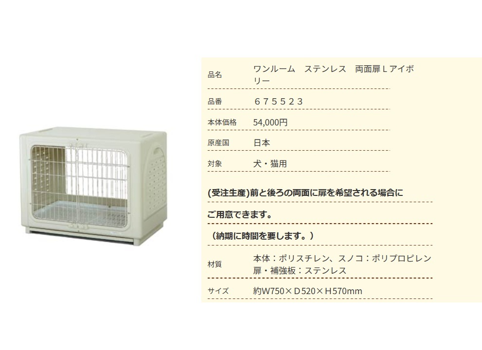 ペットツール ワンルーム ステンレス 両面扉 Lサイズ(アイボリー)