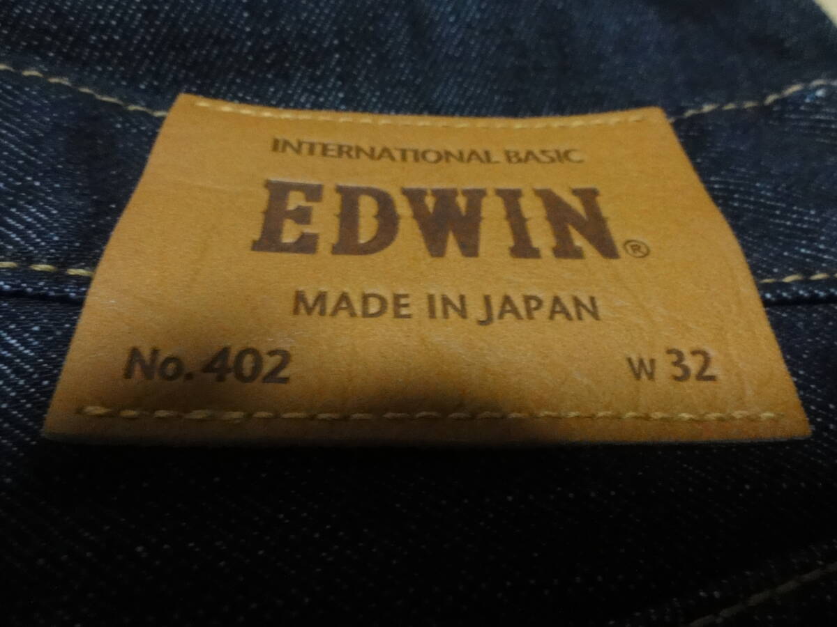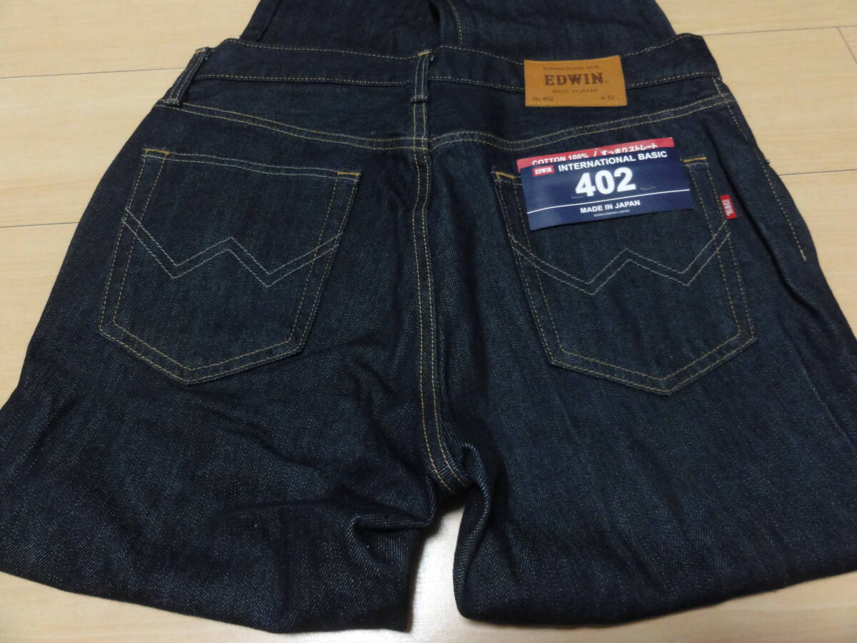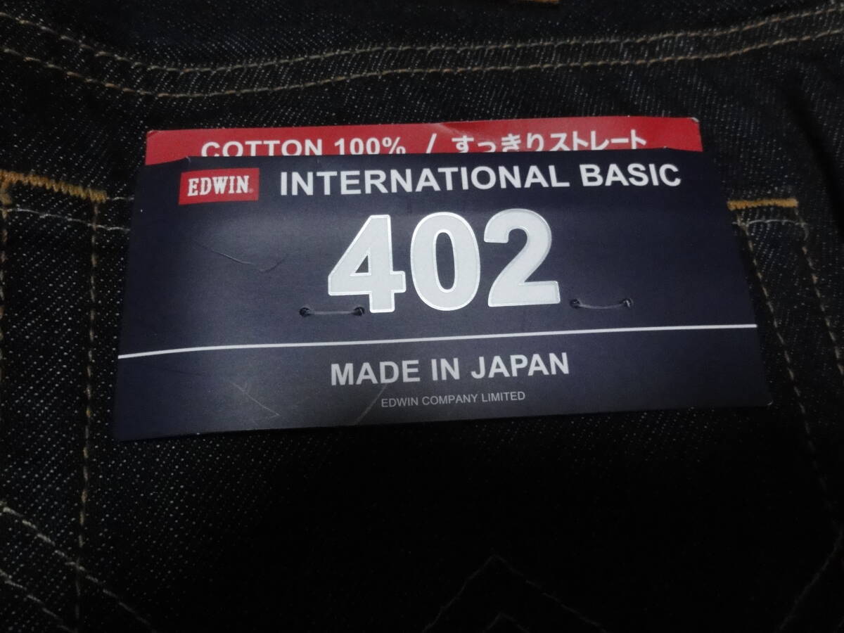 格安日本製(32・W84~86cm位)未使用タグ付き・EDWIN 402 INTERNATIONAL BASIC(エドウィン)・濃色地・高級ストレート系デザインジーンズ