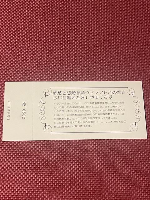 SLやまぐち号 運転6周年記念入場券 (管理番号15-64)
