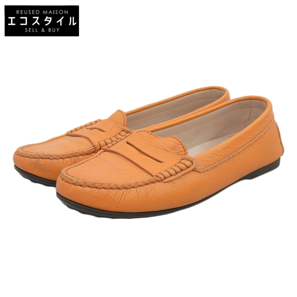 美品 TOD'S トッズ レザー スリッポン シューズ レディース オレンジ 36