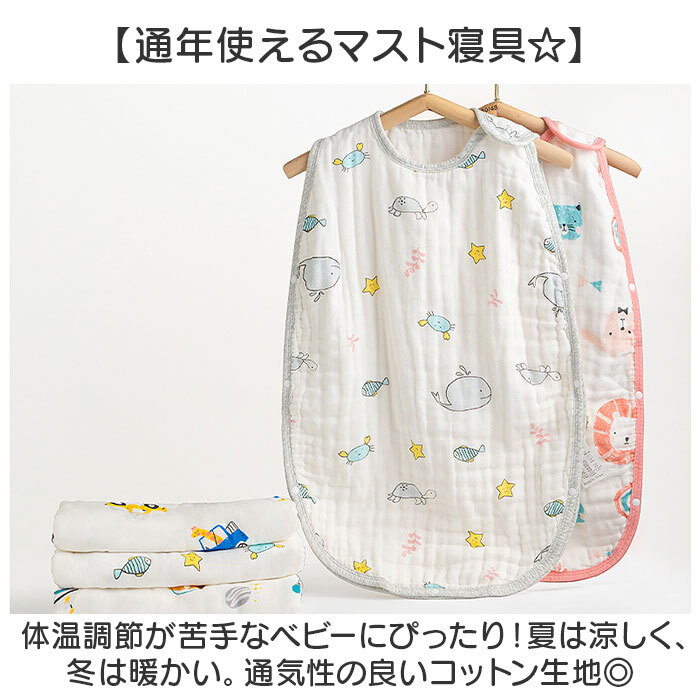 | 商品説明 | ・・【ベビーに優しいコットン100%♪】 ・お布団のかけ直しをしなくても大丈夫な、4重ガーゼスリーパー が登場。 ・【就寝時のベビーのお悩みを解決!】 ・お布団をはいでしまう、掛け布団が顔にかからないか心配…などの悩みを解決してくれるアイテム ・【通年使えるマスト寝具☆】 ・体温調節が苦手なベビーにぴったり!夏は涼しく、冬は暖かい。通気性の良いコットン生地◎ ・【寝たままの姿勢でも着せやすい】 ・両サイドと肩にスナップボタンを配置。寝姿勢のままでも着替えがしやすく、オムツ替えもOK! ・【めくれ上がり防止ボタン】 ・股下にボタンを配置し、スリーパーのめくれ上がりを防止!足をバタバタ動かしても大丈夫! ・【コットン100%の優しさと4重構造】 ・ベビーのお肌に触れても安心なコットン100%のソフトタッチ生地。通気性のよい4重構造がGOOD ・【ギフトにもオススメ☆】 ・男の子も女の子も使える、便利アイテムなので、出産祝いにもぴったり! |