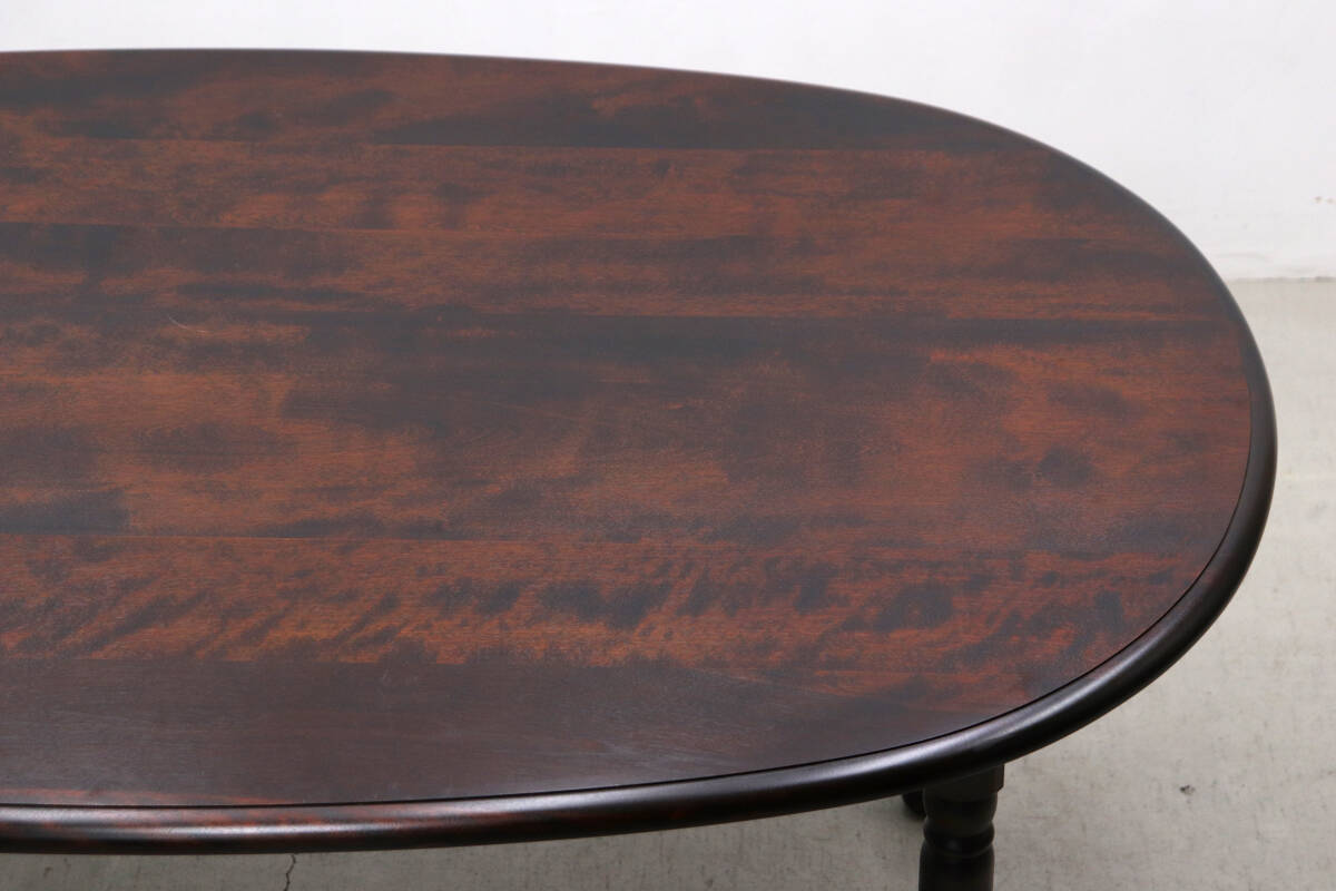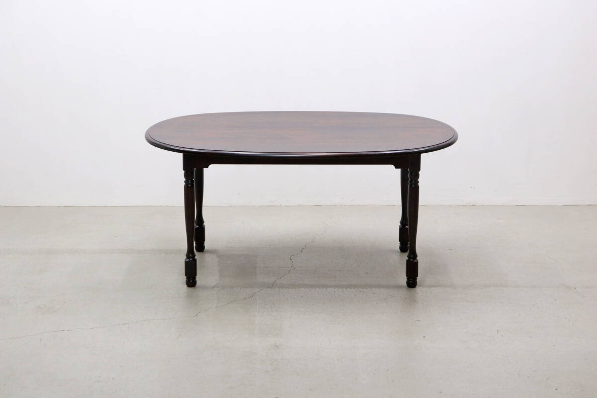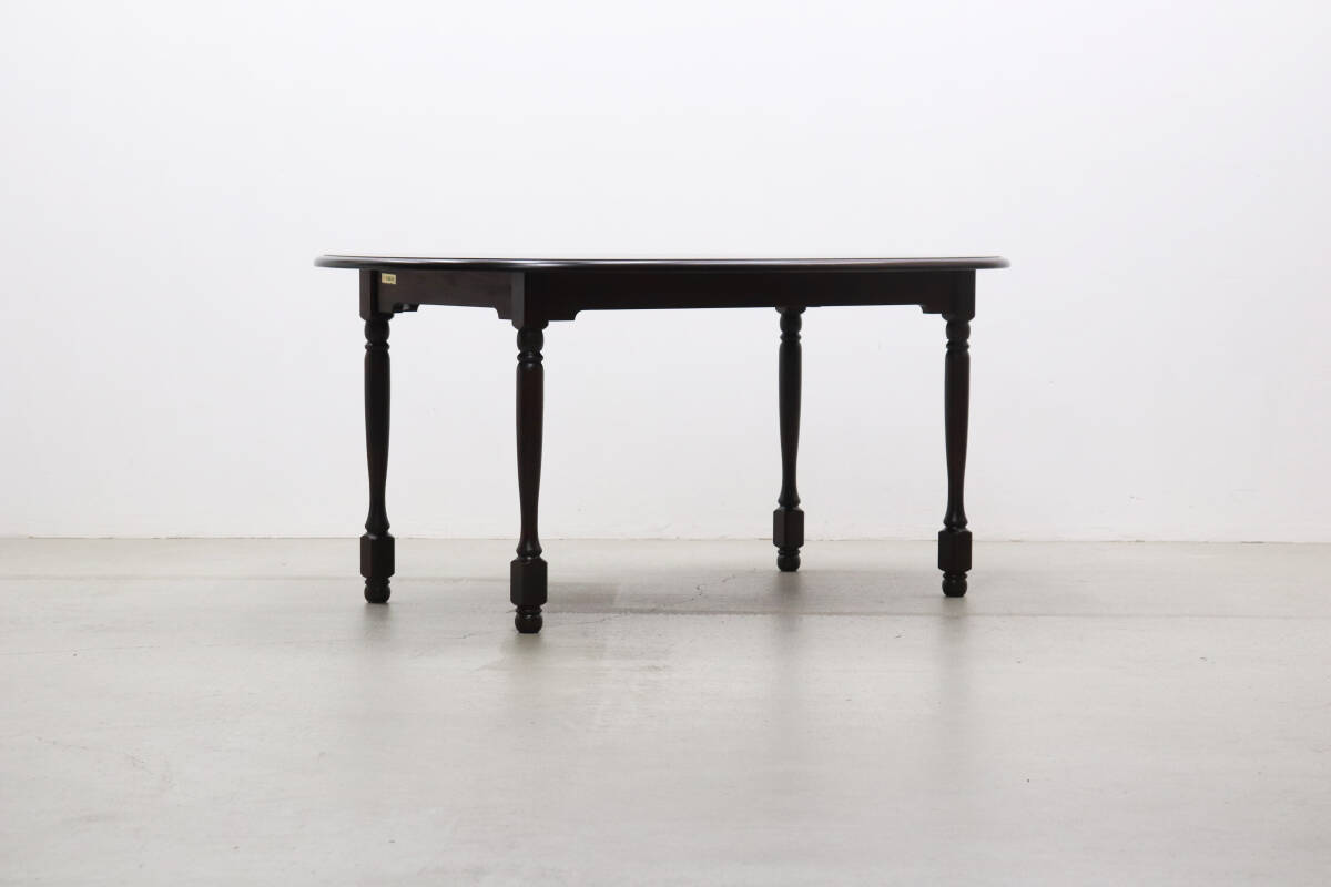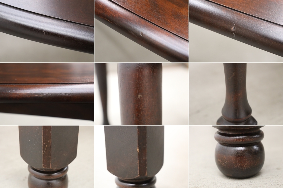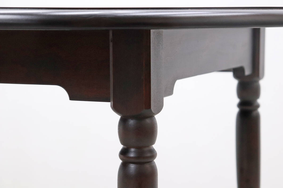 深みのあるダークブラウンの塗装と、重厚感のあるクラシカルな装飾が施されたレッグが特徴。