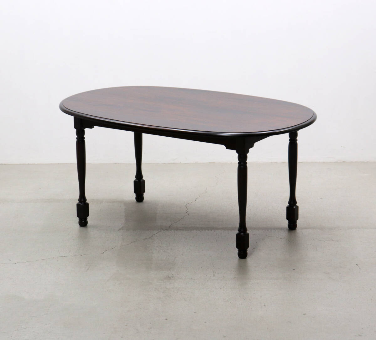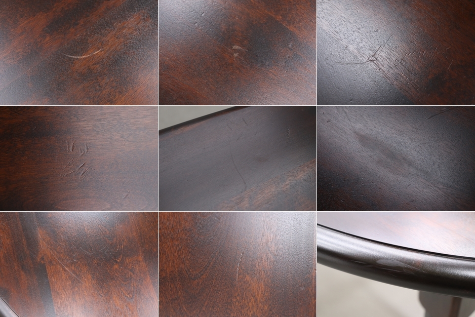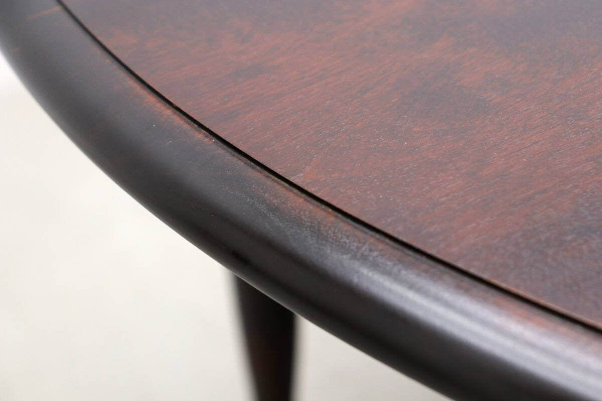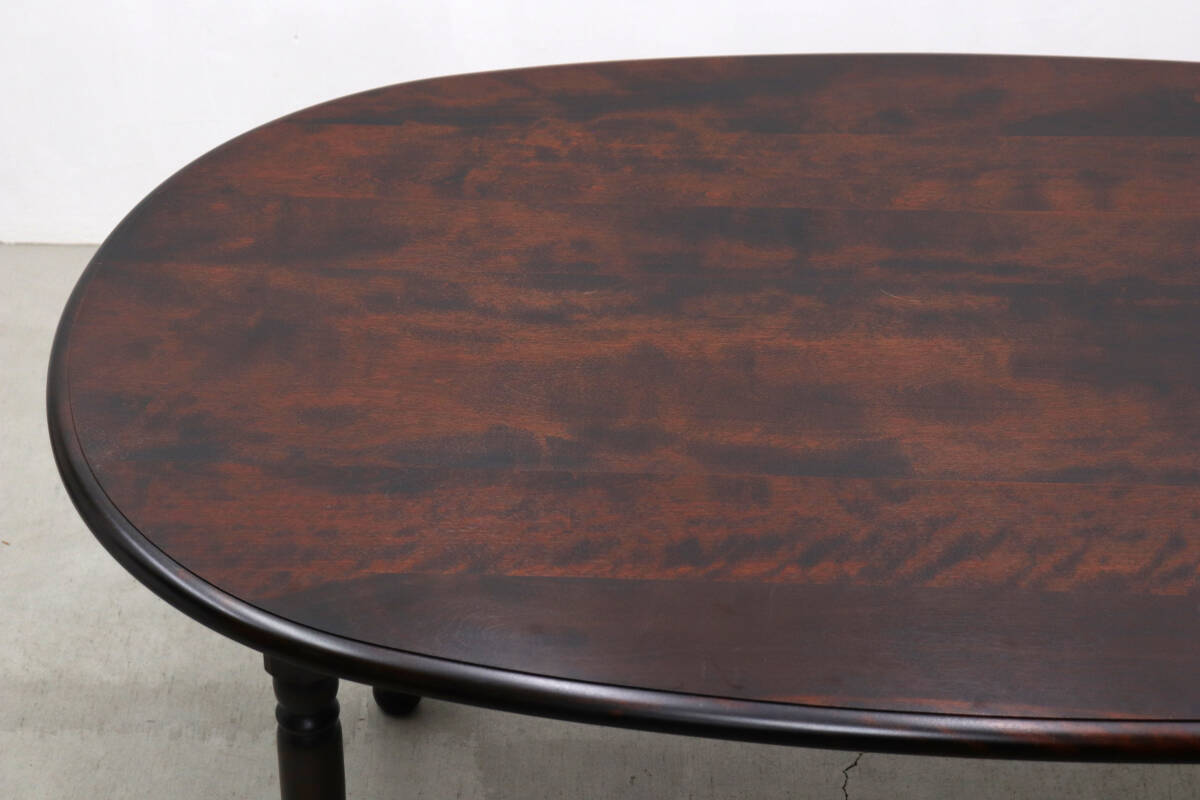 深みのあるダークブラウンの塗装と、重厚感のあるクラシカルな装飾が施されたレッグが特徴。