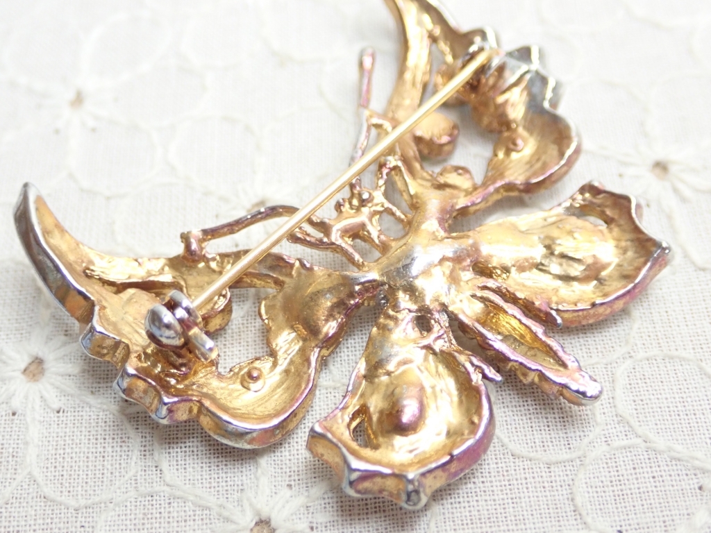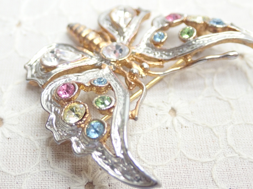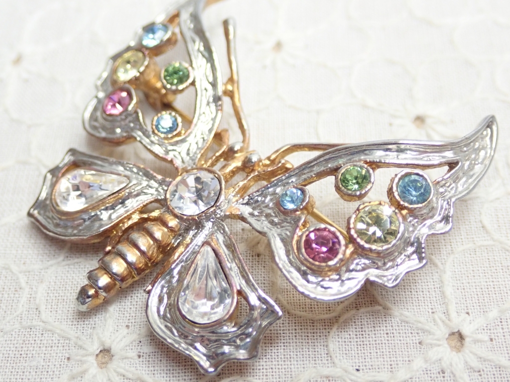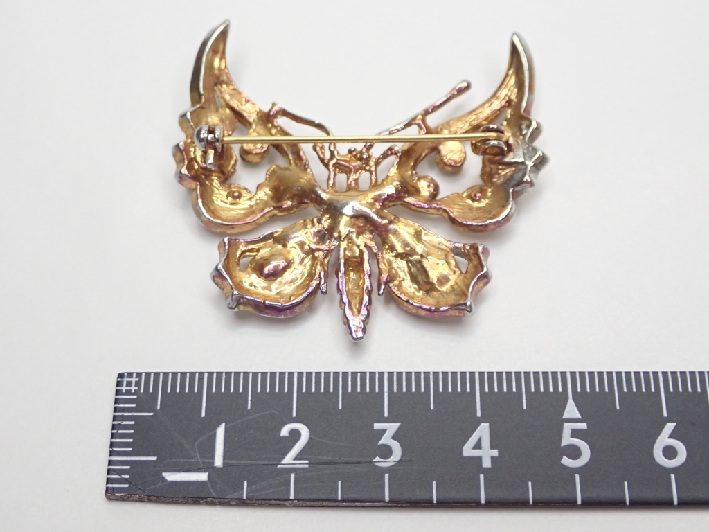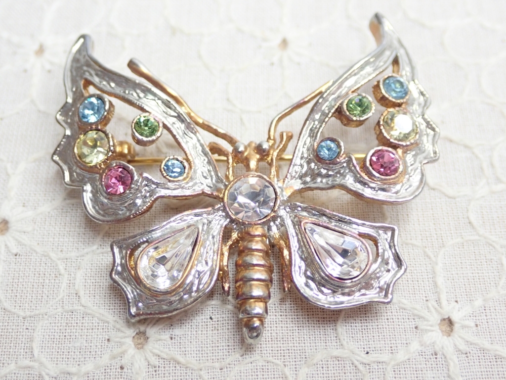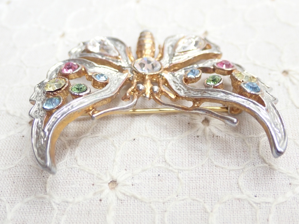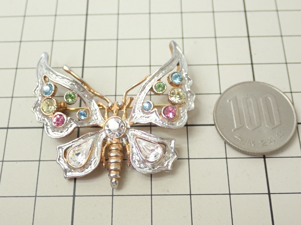 L679 ヴィンテージ ブローチ 蝶々デザイン ラインストーン アクセサリー Vintage brooch