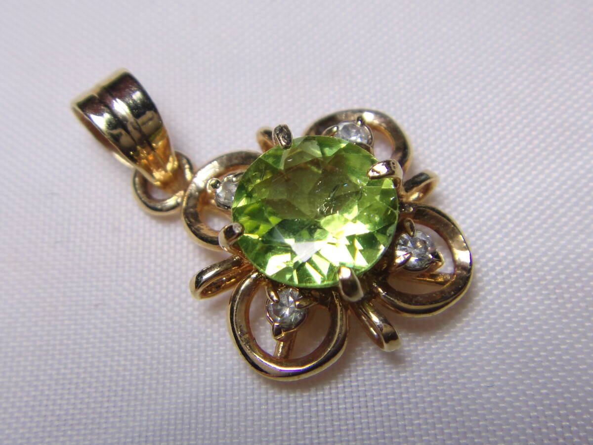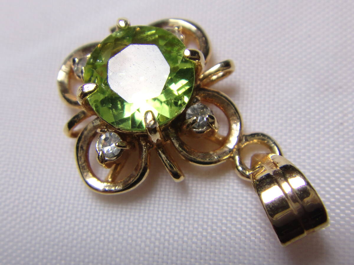 天然石 ペリドット 大粒! ネックレストップ チャーム 約7㎜ ヴィンテージ 8月誕生石 D469