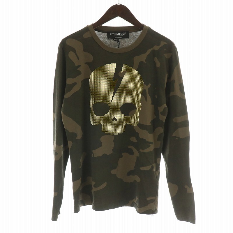 未使用品 ハイドロゲン HYDROGEN Tシャツ カットソー 長袖 ロンT スカル ドクロ カモフラ 迷彩 タグ付き S カーキ 茶 ブラウン /MW ■GY18 メンズ