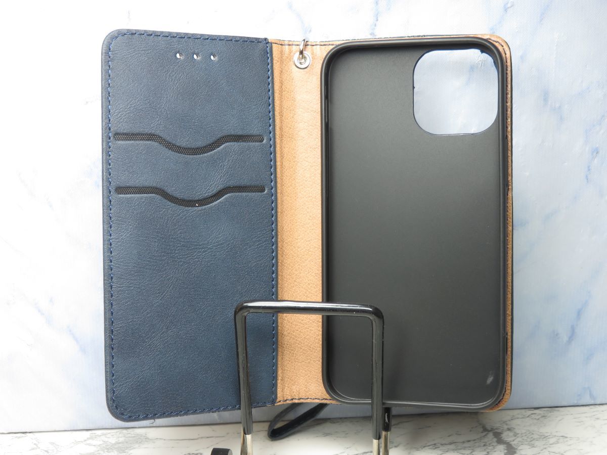 iphone13mini手帳型 ケース、iPhone 13mini用手帳型ケース*新品*当日発送(ネイビーブルー)