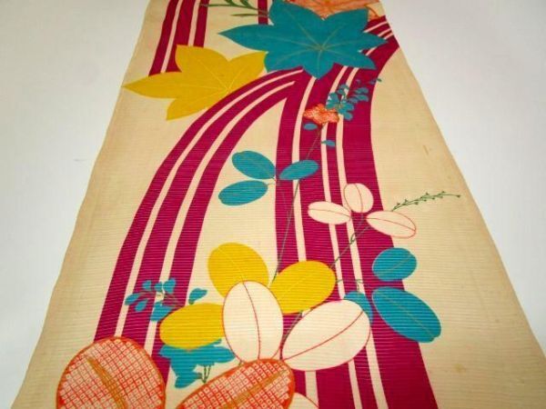 F-2★薄色*楓*萩*正絹*絽*古布はぎれ★汚れ・キズあり!夏柄/暖簾/文化人形/一閑張り/吊るし雛/市松人形