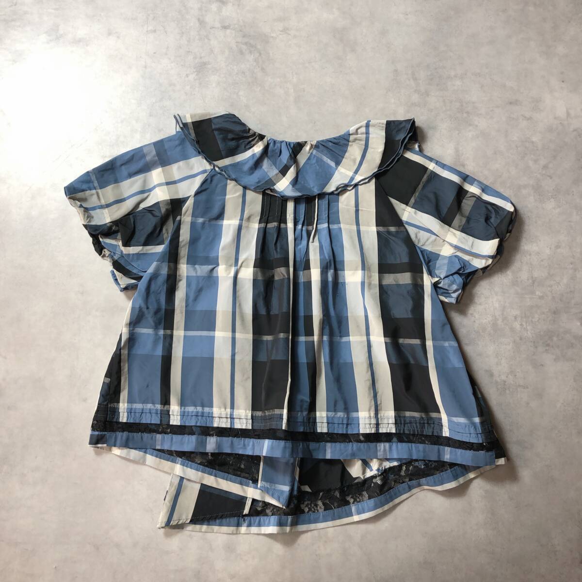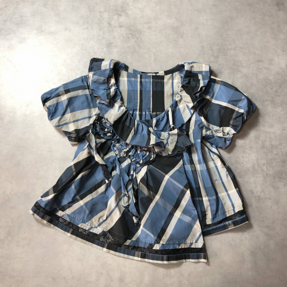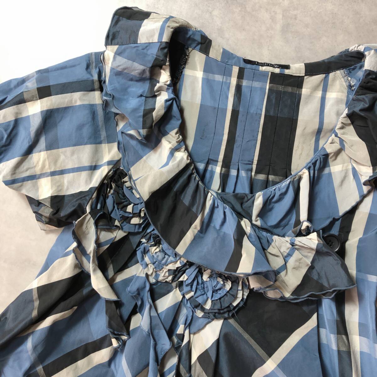 商品名 :WH049●Le-Fluy: フリル襟フラワーモチーフチェックシャツ ●M● ブルー/ブラック/ベージュ 日本製 レフルイ