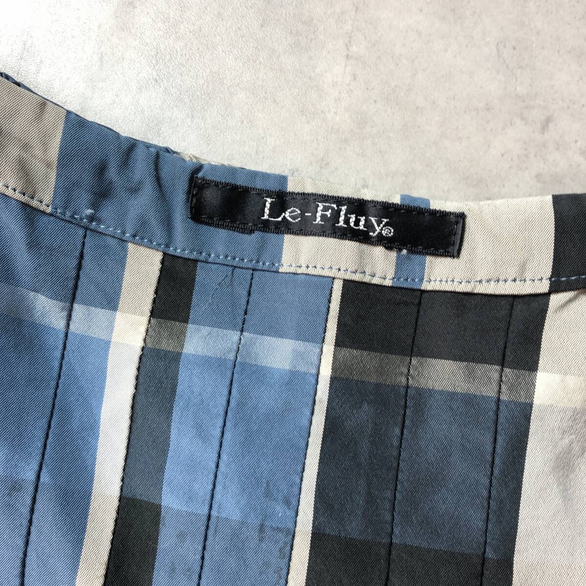 WH049●Le-Fluy: フリル襟フラワーモチーフチェックシャツ ●M● ブルー/ブラック/ベージュ 日本製 レフルイ