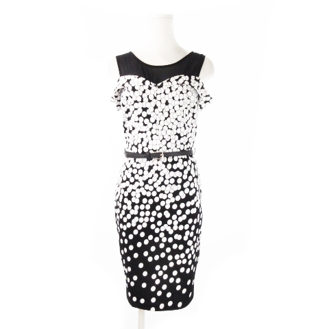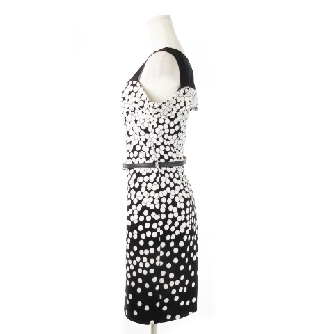 未使用品 ジュドランジュ JUS D'ORANGE ミニワンピース ノースリーブ フェイクレイヤード ドット ベルト付き T1 S 黒 白