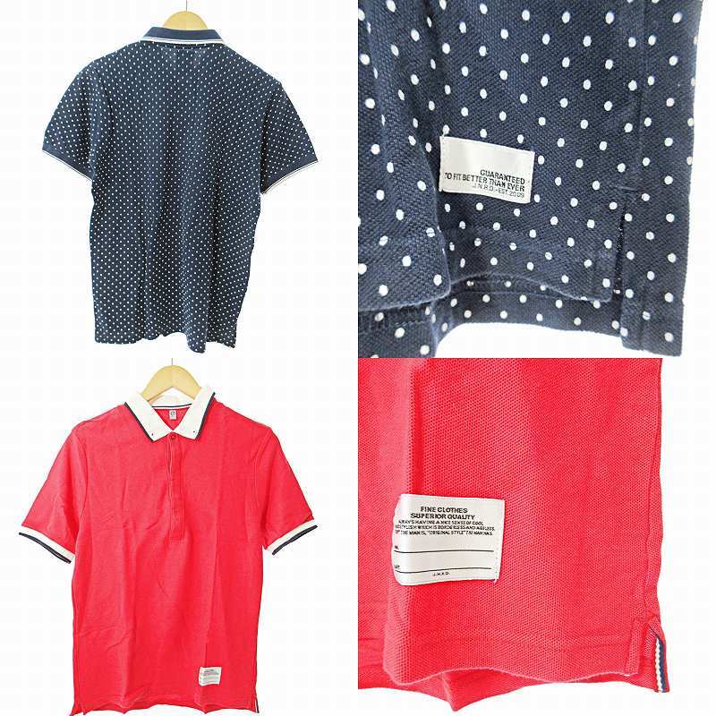 ジュンレッド JUNRed J.N.R.D ポロシャツ カットソー 半袖 3点 3着 セット おまとめ ボーダー ドット 1 赤 紺 0616 メンズ