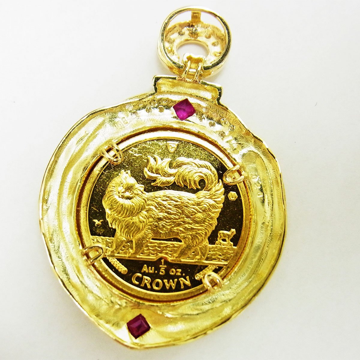 商品名 | キャット金貨1/5oz K18枠 ダイヤMD0.2ct ガラス付 ペンダントトップ |