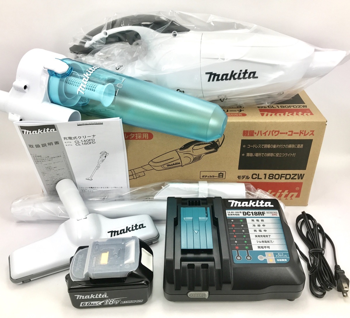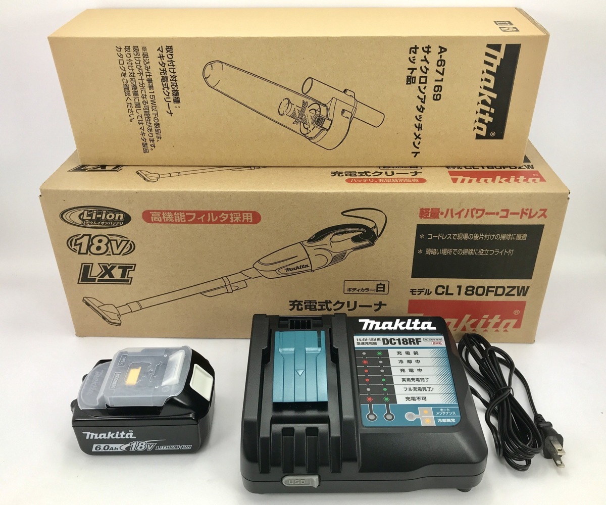 新品 マキタ 充電式クリーナ CL180FDZW 本体 + バッテリ BL1860B + 充電器 DC18RF + サイクロンアタッチメント ( 18V 6.0Ah バッテリー )