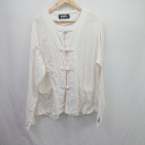 ◇ ⊂ RNA アールエヌエー 綿100% チャイナボタン 長袖 シャツ サイズM オフホワイト レディース E