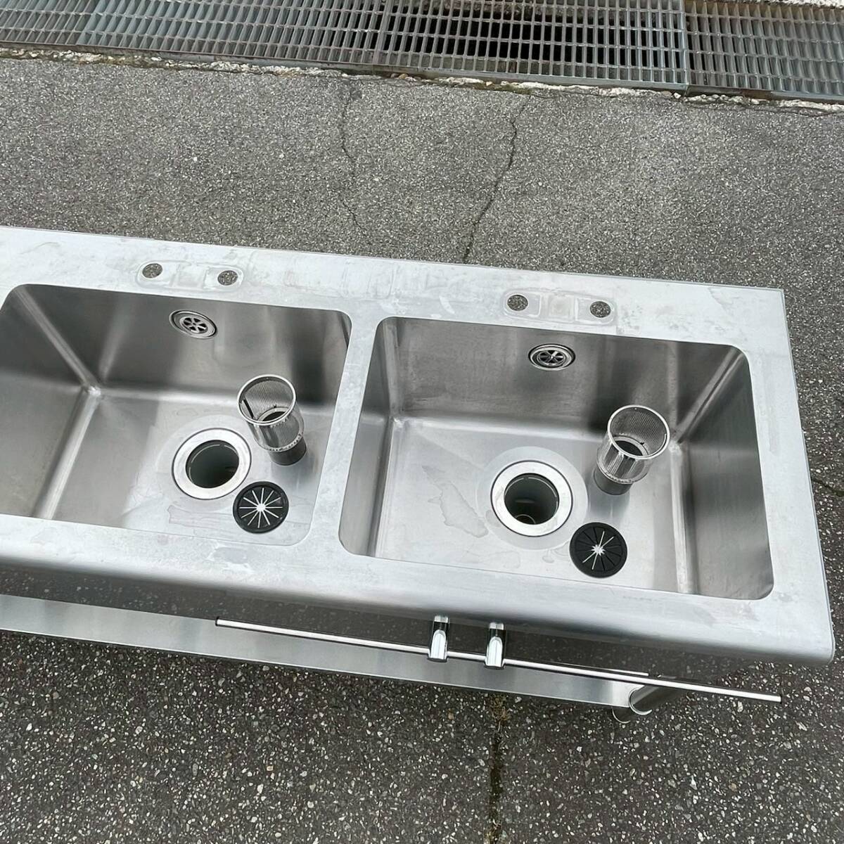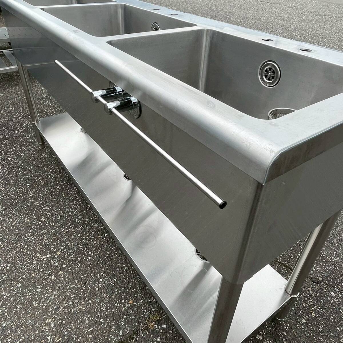 ・ステンレス製 3槽シンク 業務用 W1500×D450×H800 ステンレスシンク 厨房 厨房機器 店舗 店舗用品 流し台 水栓取付穴あり 状態良好 Y1769