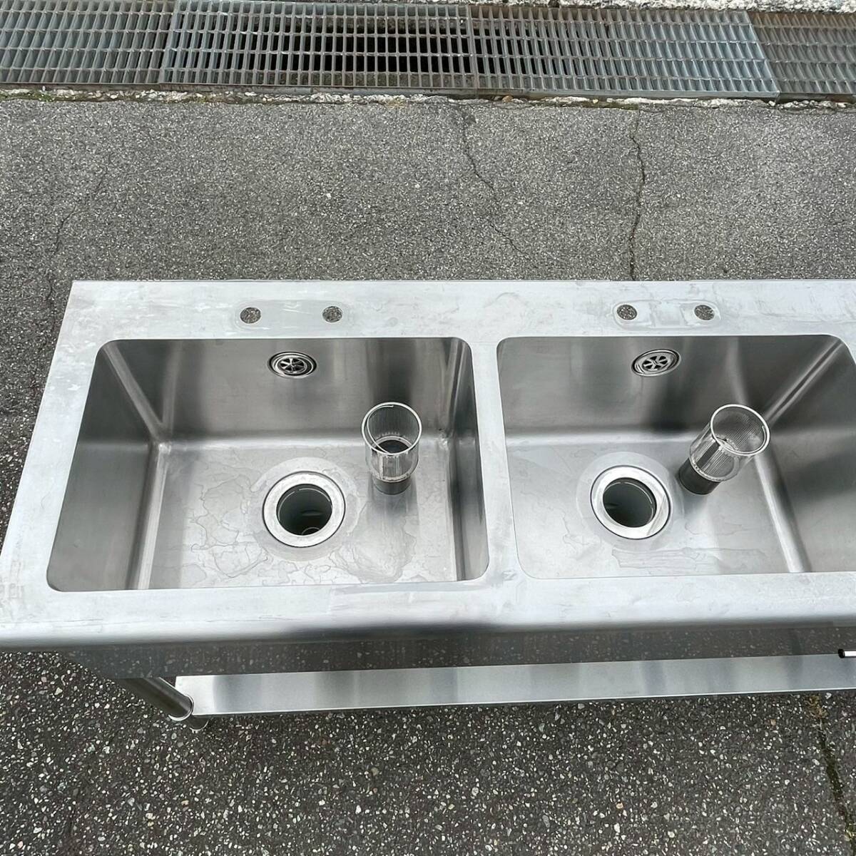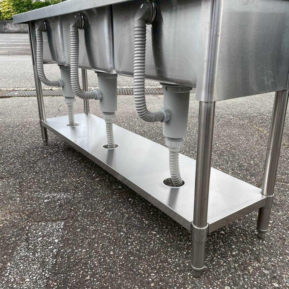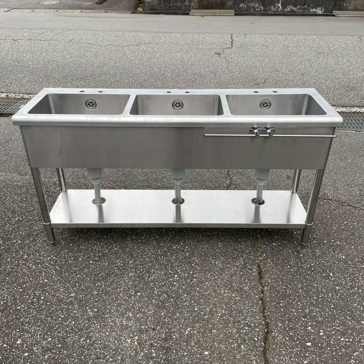ステンレス製 3槽シンク 業務用 W1500×D450×H800 ステンレスシンク 厨房 厨房機器 店舗 店舗用品 流し台 水栓取付穴あり 状態良好 Y1769