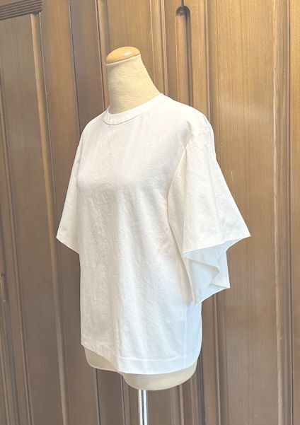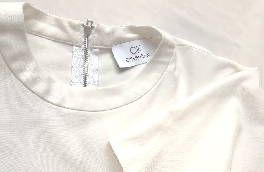 CK CALVIN KLEIN カルバン・クライン★袖フレア・バンドカラー・ブラウス・オフホワイト・大きめXS★美品