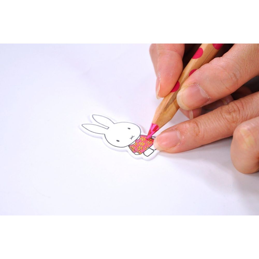●ディック・ブルーナのグラフィックが描かれ、型抜きされた台紙に、色鉛筆などで好きな色をぬって自分だけのブローチを作るセットです。