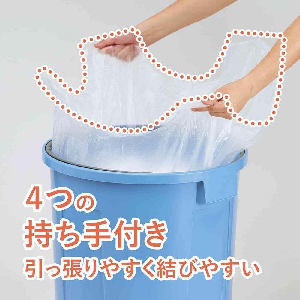 ●持ち手付きなので、ゴミ箱からの取り出しがスムーズで結びやすい高密度ゴミ袋です。
