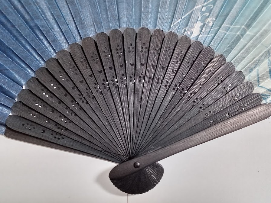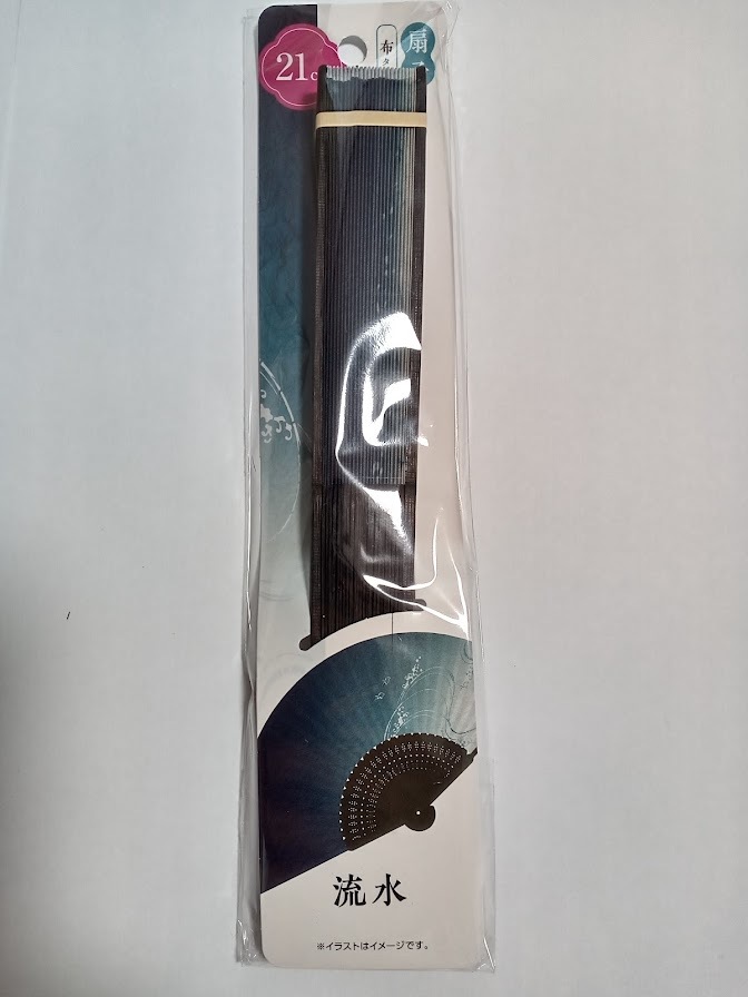 ★最後の1点です! 早い者勝ち!【★高級品!★ 流水 扇子 紺色 21㎝ 布タイプ 天然竹使用】清流 和柄 夏 うちわ